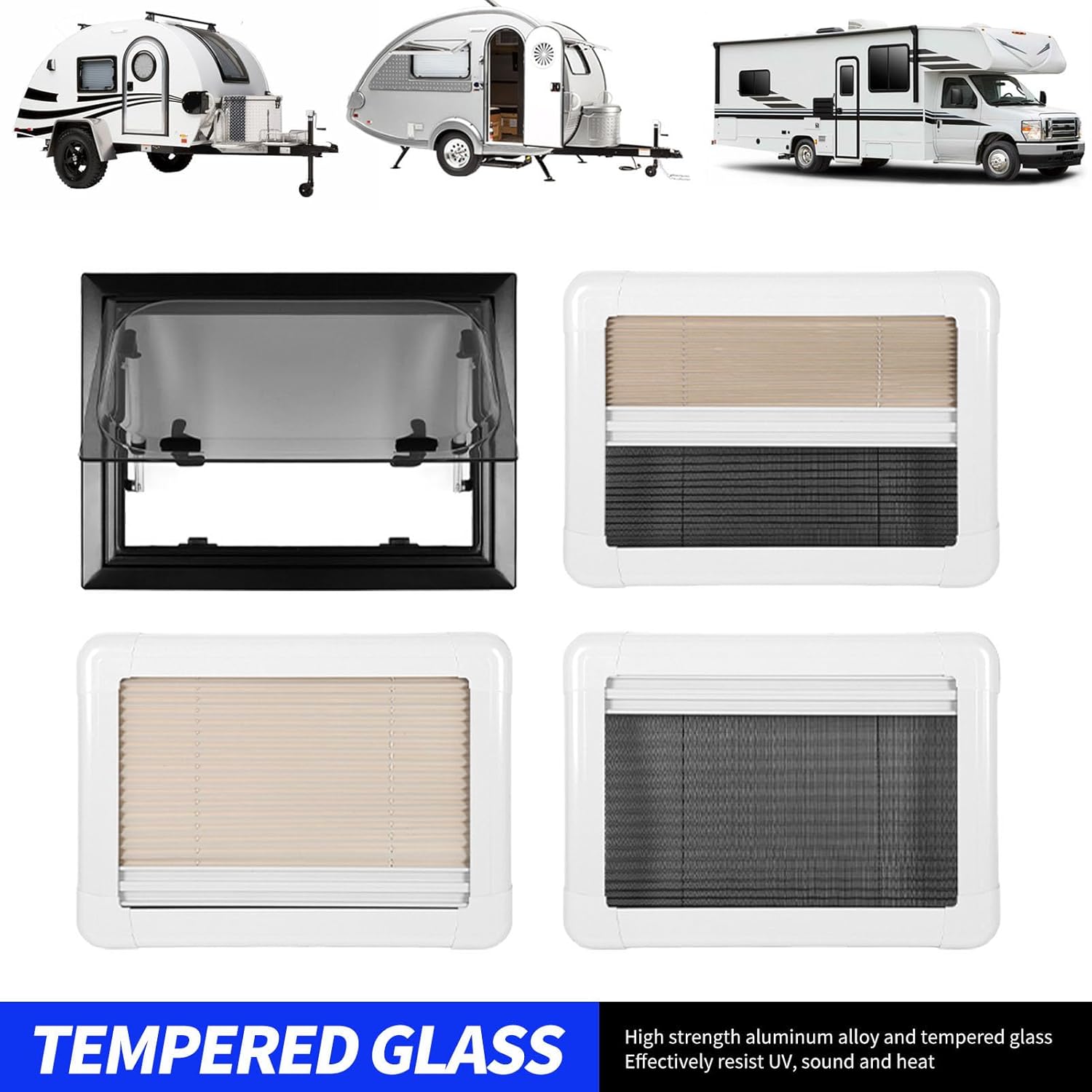16 X 12 Inch Camper Push Window, RV Window, RV Push Out Window, Proof Camper Acrylic Glass Hinged Window with Screen, Double Layer for Campers, RVs, Construction Vehicles