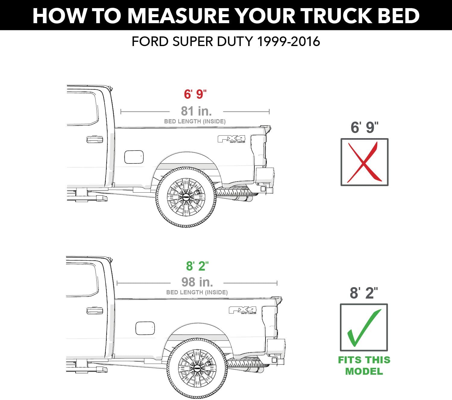 - Fits 2008 - 2016 Ford F-250/350/450 Super Duty 8' 2" Bed (98")
