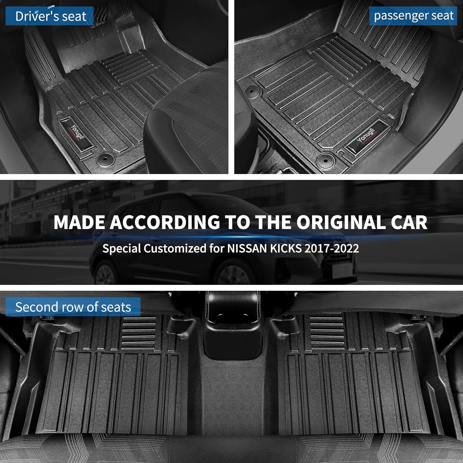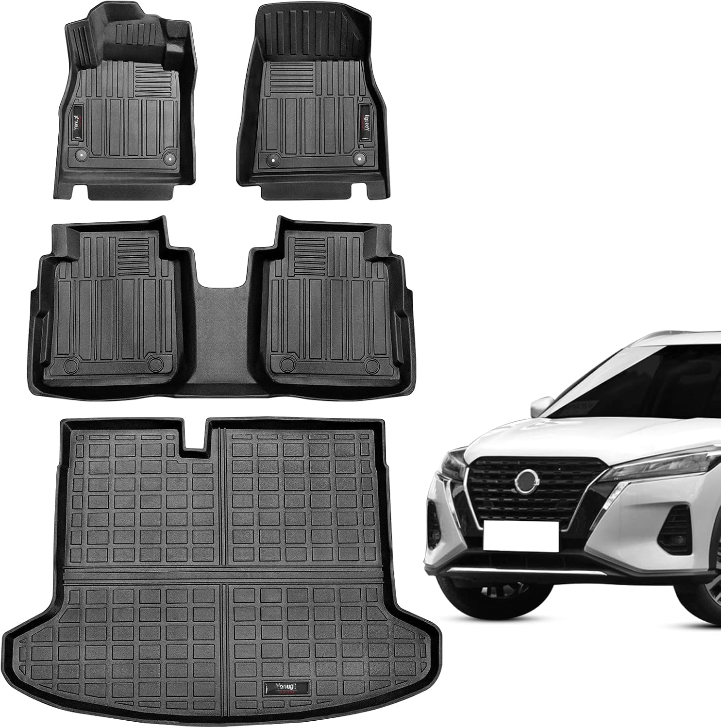 2018-2024 Nissan Kicks - Yonugli Floor Mats and Trunk Cargo Liner Backrest Mat Set Black All Weather Rubber Protection Mat for Nissan Kicks Accessories