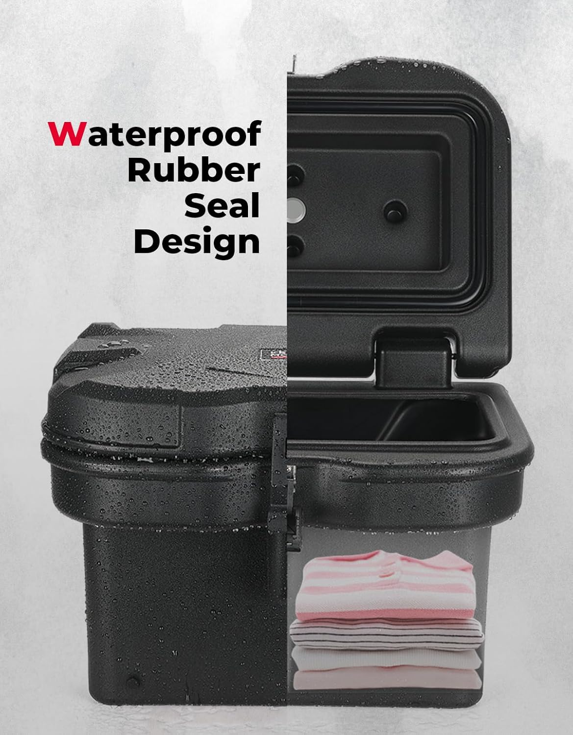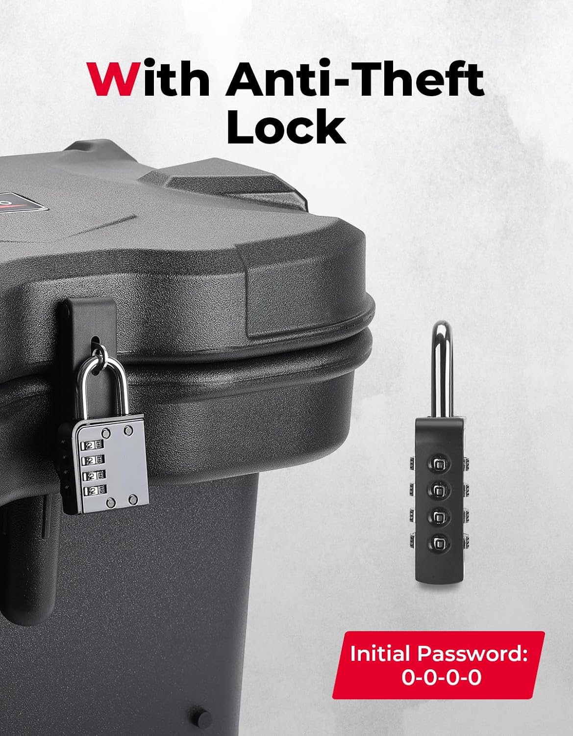 With a textured black, heavy-duty lid made of durable LDPE low-density polyethylene material, this KEMIMOTO box for cargo storage can withstand 75kg and has improved leak and pressure resistance. A combination lock and wire rope might help safeguard your box from theft.