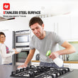 - đăConvenient Cleaning MaintenanceăThis gas cooktop features 100% stainless steel top, durable bakelite knobs and cast iron grates for effortless cleaning and maintenance.