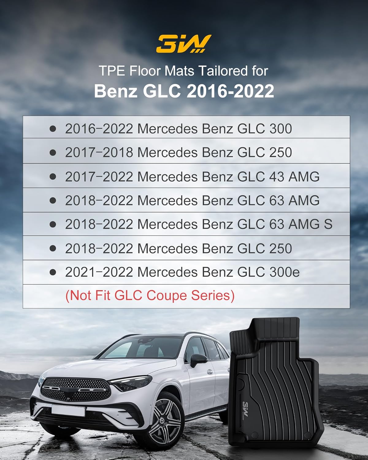 - PERFECT FIT FOR Benz GLC 2016-2022: Custom fit design edge to edge for maximum coverage and protection with TPE (thermoplastic elastomer) material which ensures your more strength, resilience, durability and elasticity, this floor mat and cargo liner is matchable with mercedes Benz GLC250/ GLC300/ GLC300e/ GLC350e/ GLC43 AMG/ GLC63 AMG/ GLC63 AMG S (Not applicable to sports car series)
