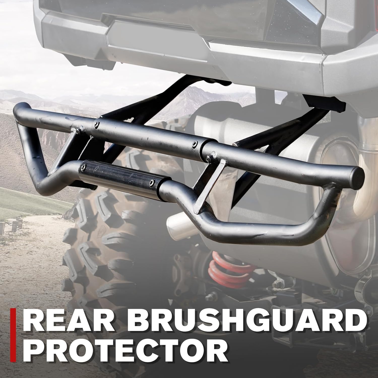 - WELL PROTECTION FOR YOUR POLARIS GENERAL: The front brush guard protects the hood, fascia, and headlights from trail debris and work-site obstacles. The rear brush guard bumper shields the rear fascia, exhaust, and taillights by attaching to the pre-designed mounts under the cargo box. Make your ride more adventurous.