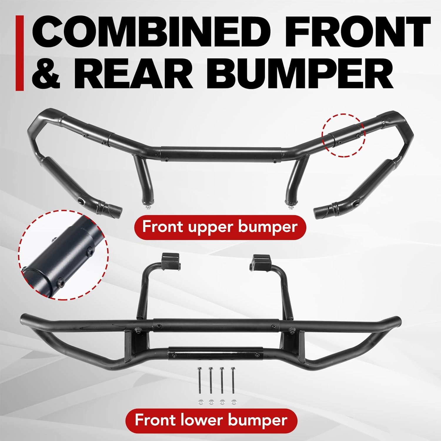 - PERFECTLY MATCH GENERAL STYLE: The sport rear and front bumpers make your vehicle cooler and add a stylish and aesthetic look to your vehicle. Black powder coated bumpers makes your general 1000 more reliable.