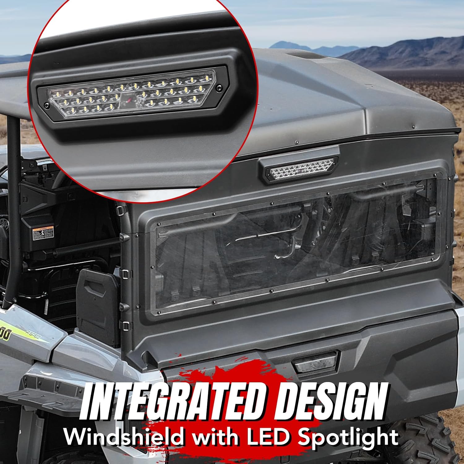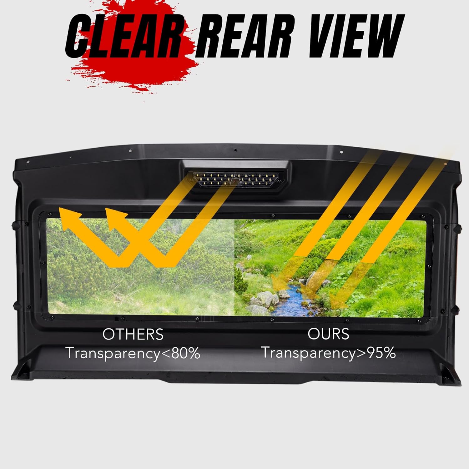 A & UTV PRO Rear Back Windshield with Led Work Light for Yamaha Wolverine RMAX 4 1000 2021 2022 2023 2024, Heavy Duty Dustproof Durable Full Clear RMAX4 Rear Window Accessories