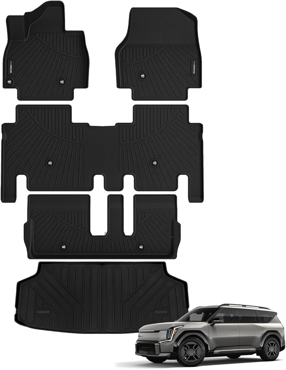 - 🚗FITS LIKE A GLOVE: Auxko floor mats for Kia EV9 7 Seat 2024 2025 are high-precision laser measured, meaning our custom fit will offer optimal coverage and look as if the mats came with your Kia EV9 7 Seat 2024 2025. Auxko incorporates a specially designed retention system and non-slip nibs on the mats to keep them locked in place.