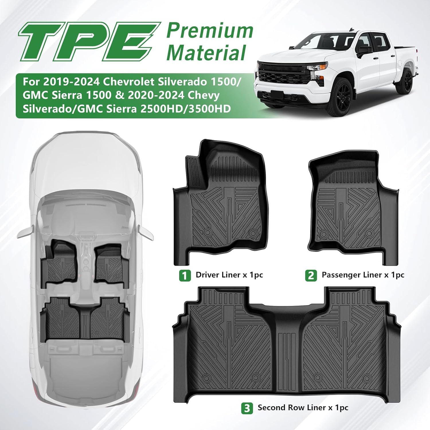 - 【TPE Premium Material】This Sierra 3500HD floor mat is 100% safe for you and your family, composed of TPE, an eco-friendly material that is non-toxic and odorless. Dust and grime are difficult to absorb, easy to clean, and don't require any tool.
