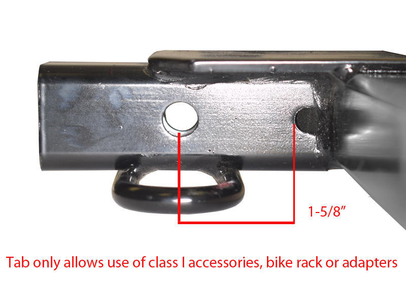 Please note that class I trailer hitches are equipped with a dimple to prevent the use of class II ball mounts, adapters and/or some certain bike racks from being utilized. From the center of hitch pin hole to this dimple measures 1-5/8"
