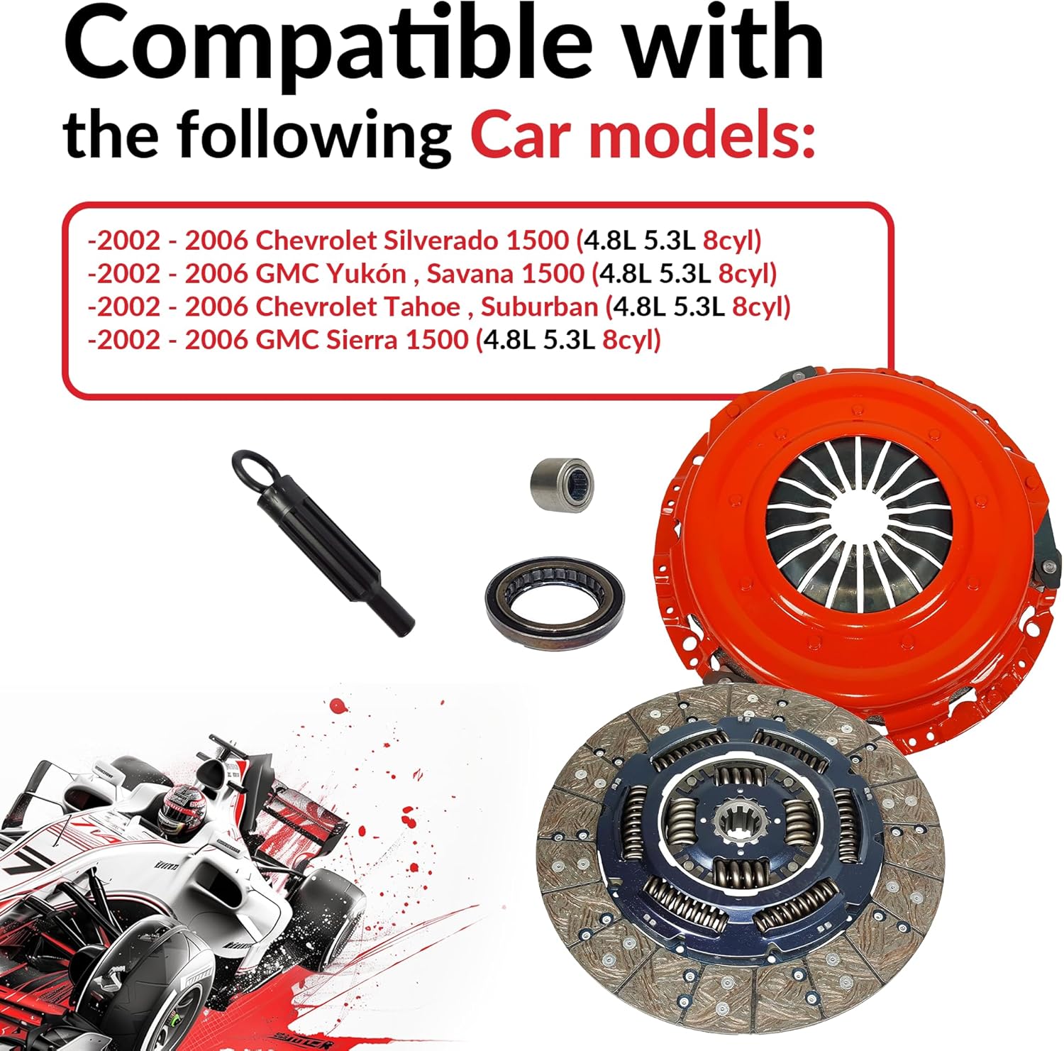 Clutch Kit Compatible With Sierra Silverado Sierra 1500 Ls Lt Wt Sl Sle Slt Z71 2002-2006 4.8L V8 GAS OHV 5.3L V8 FLEX OHV Naturally Aspirated (Stage 1; 04-182R)