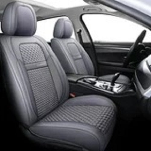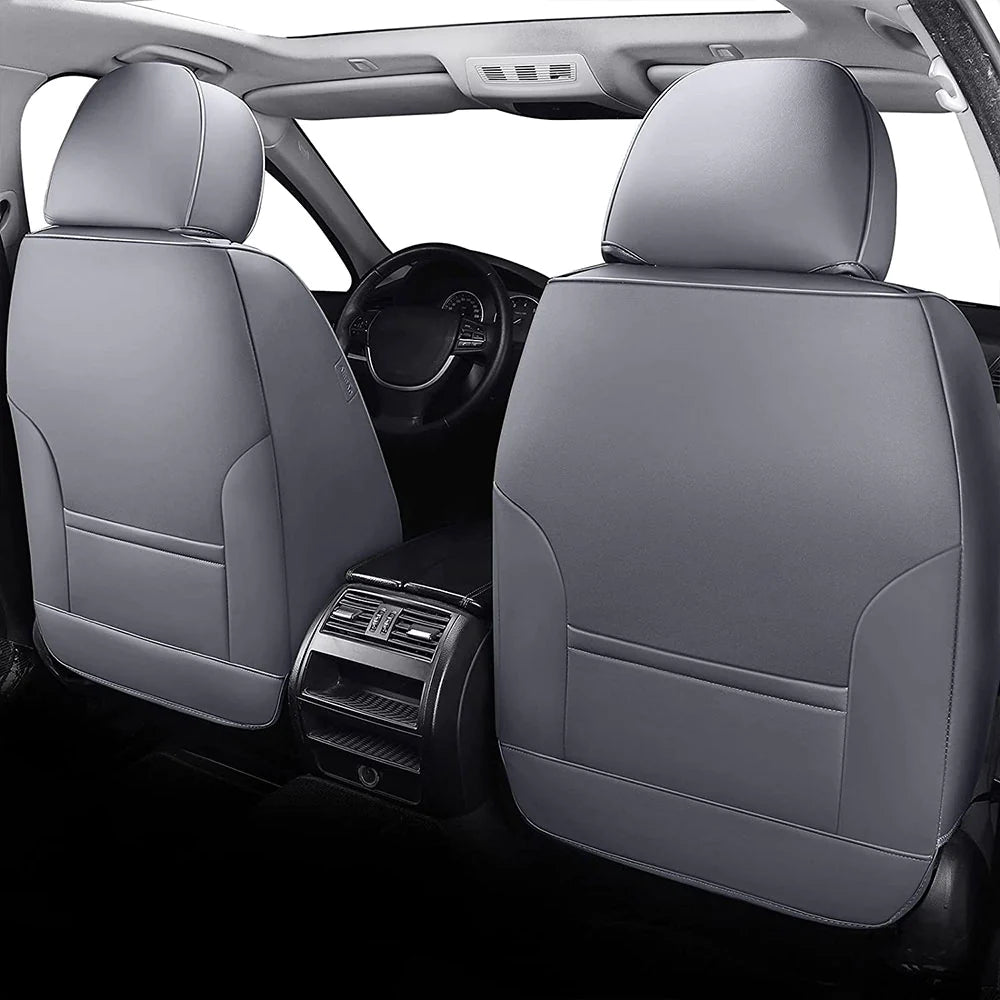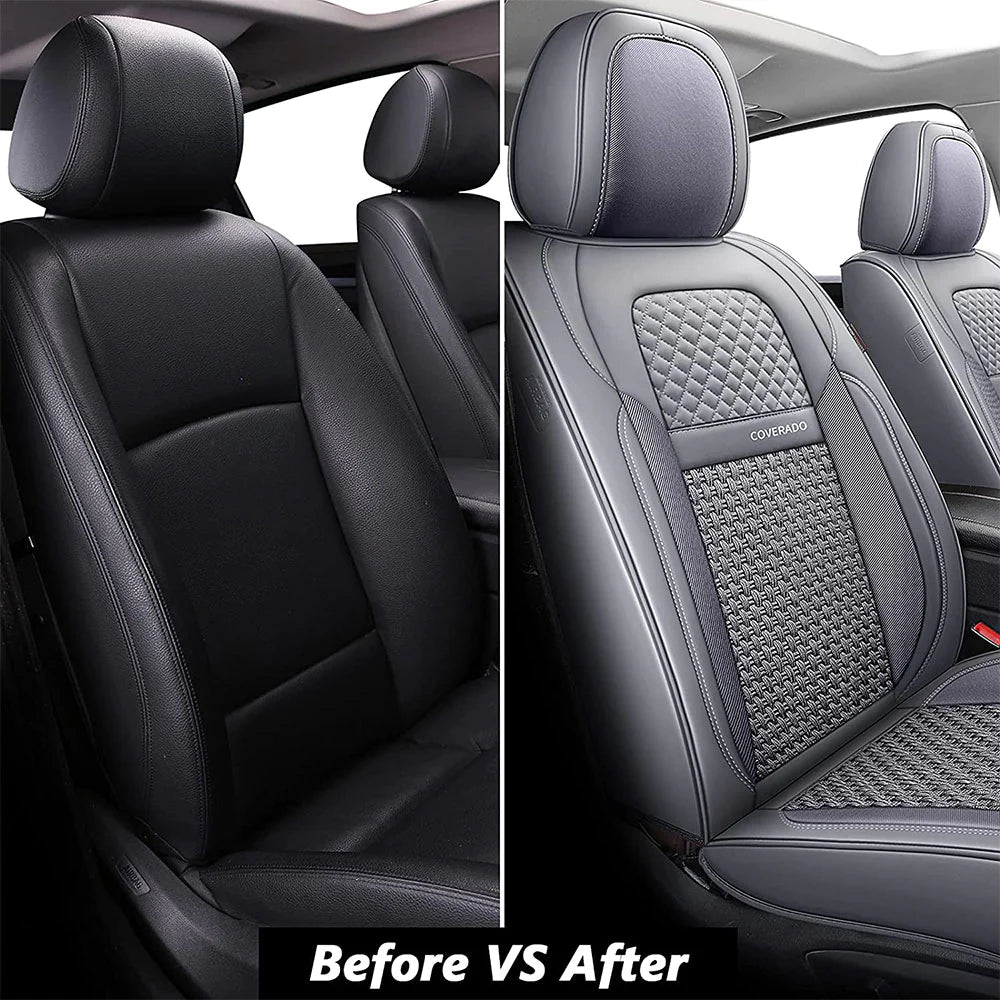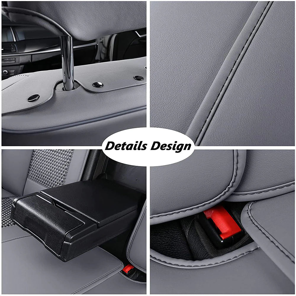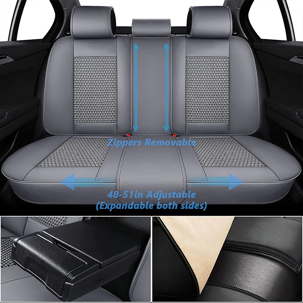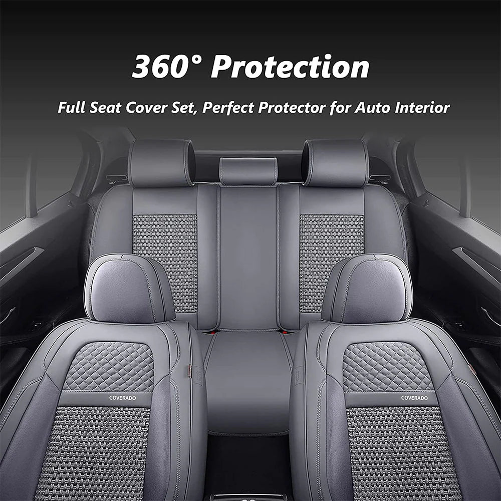 Coverado Front and Back Seat Covers Full Set 5 Seats Faux Leather & Woven Fabric, Gray