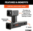 * HIGHLY VERSATILE. This multi-use trailer hitch ball mount equips your vehicle with two 2-inch hitch receivers, one for towing a trailer and the other for mounting a cargo carrier or bike rack