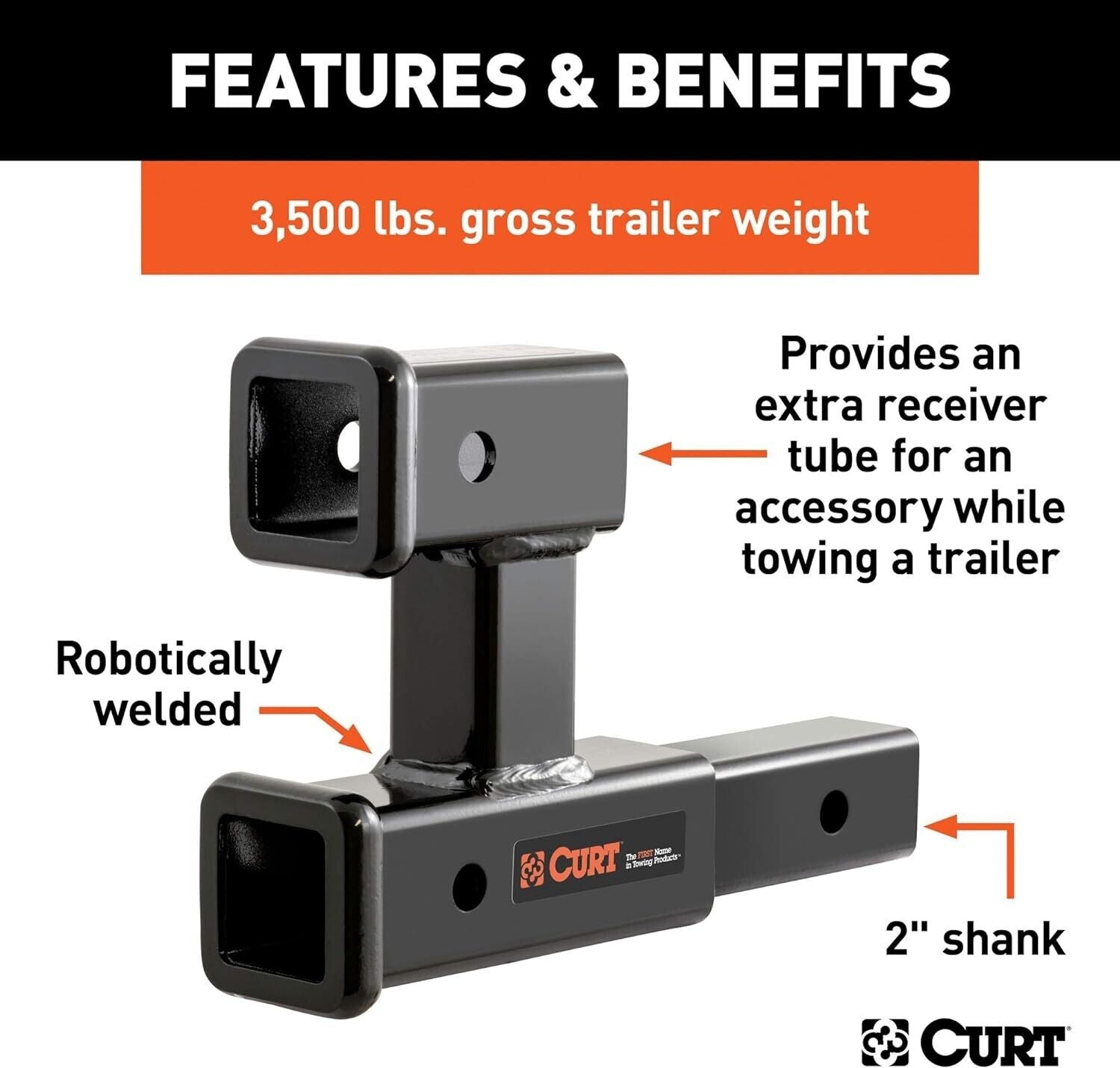 Curt 45792 2" Dual Receiver Extender / Adapter 8" Length, 5-3/4" Rise, 3500 Lbs