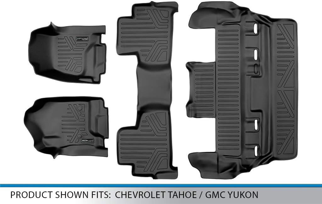 Custom Fit Floor Mats 3 Row Liner Set Black Compatible with 2015-2020 Chevrolet Tahoe/GMC Yukon