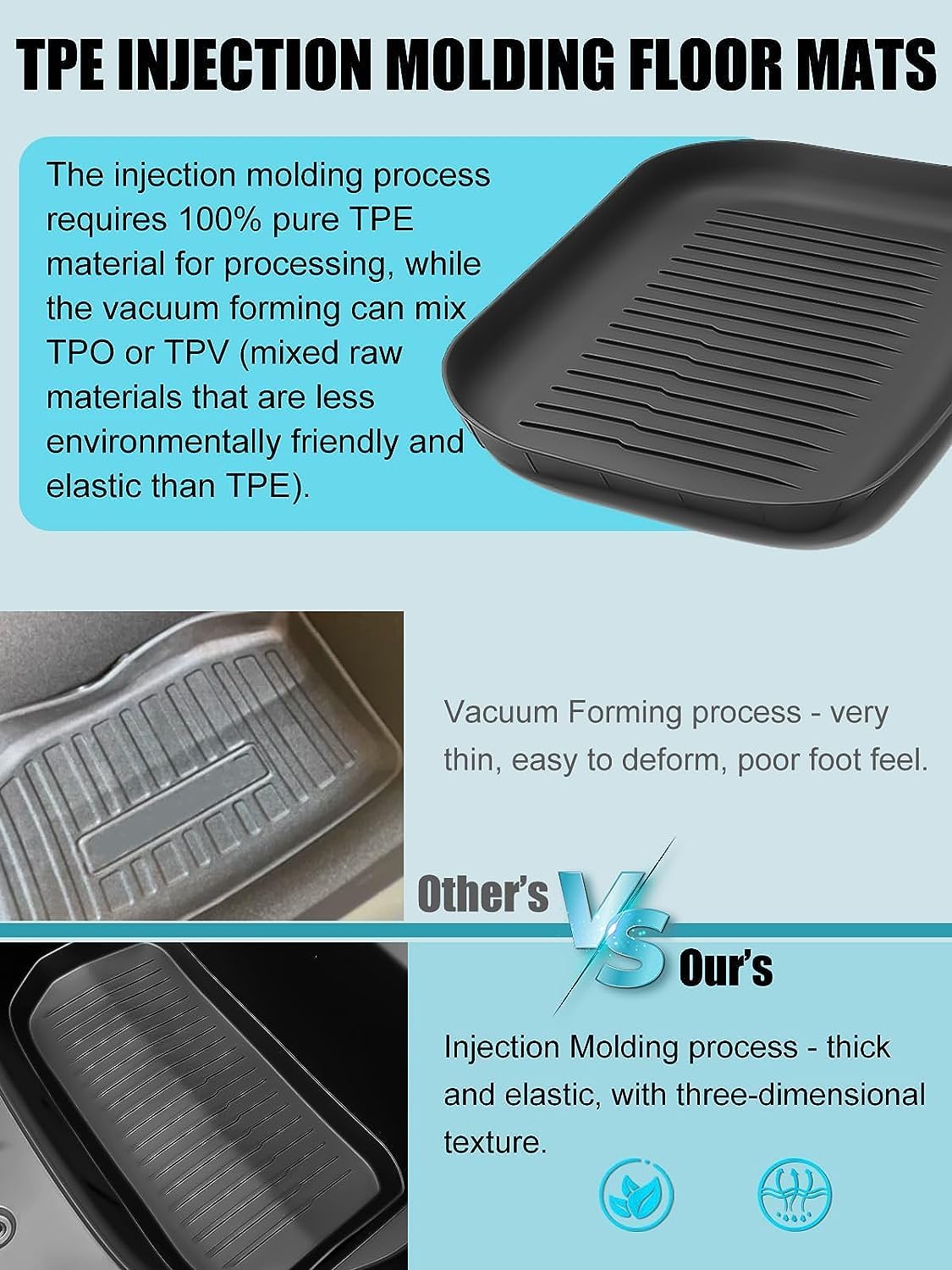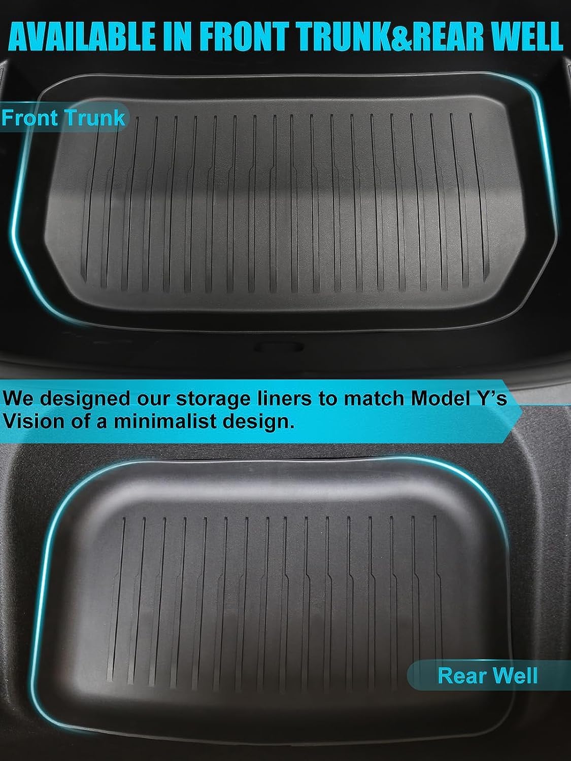 DESLE Tesla Model Y Trunk Mats All Weather Trunk Mats & Trunk Cargo Liners Custom Fit Eco-Friendly,Rubber Odorless,TPE Material 3Pcs New Model Y 2020-2024