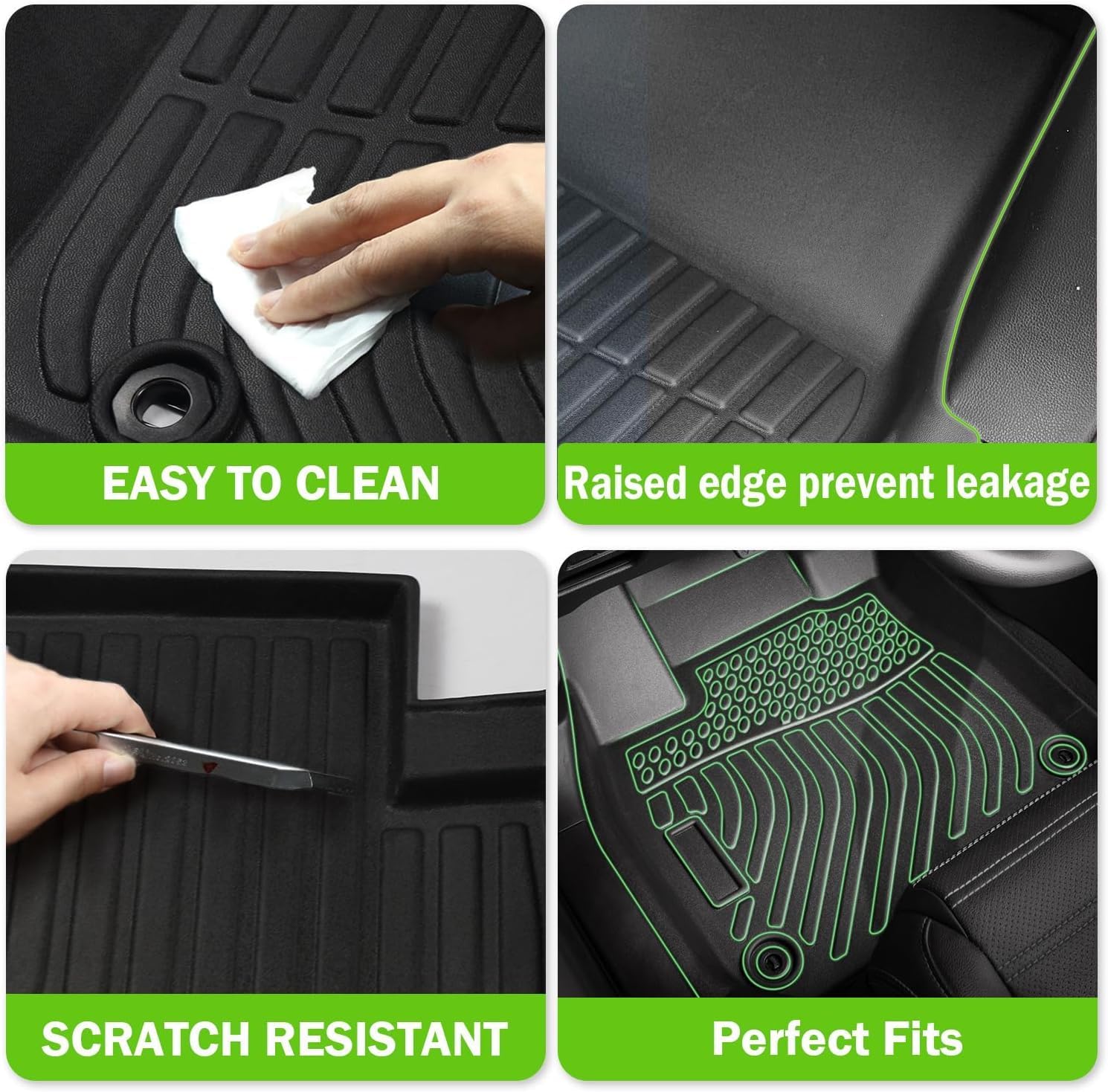- EASY TO CLEAN: The custom floor liners are waterproof, stain-resistant, durable, and easy to clean. Clean easily with a damp towel, or remove them from the car and rinse with water. Quick and easy to get your car floor mats looking nice and new again!