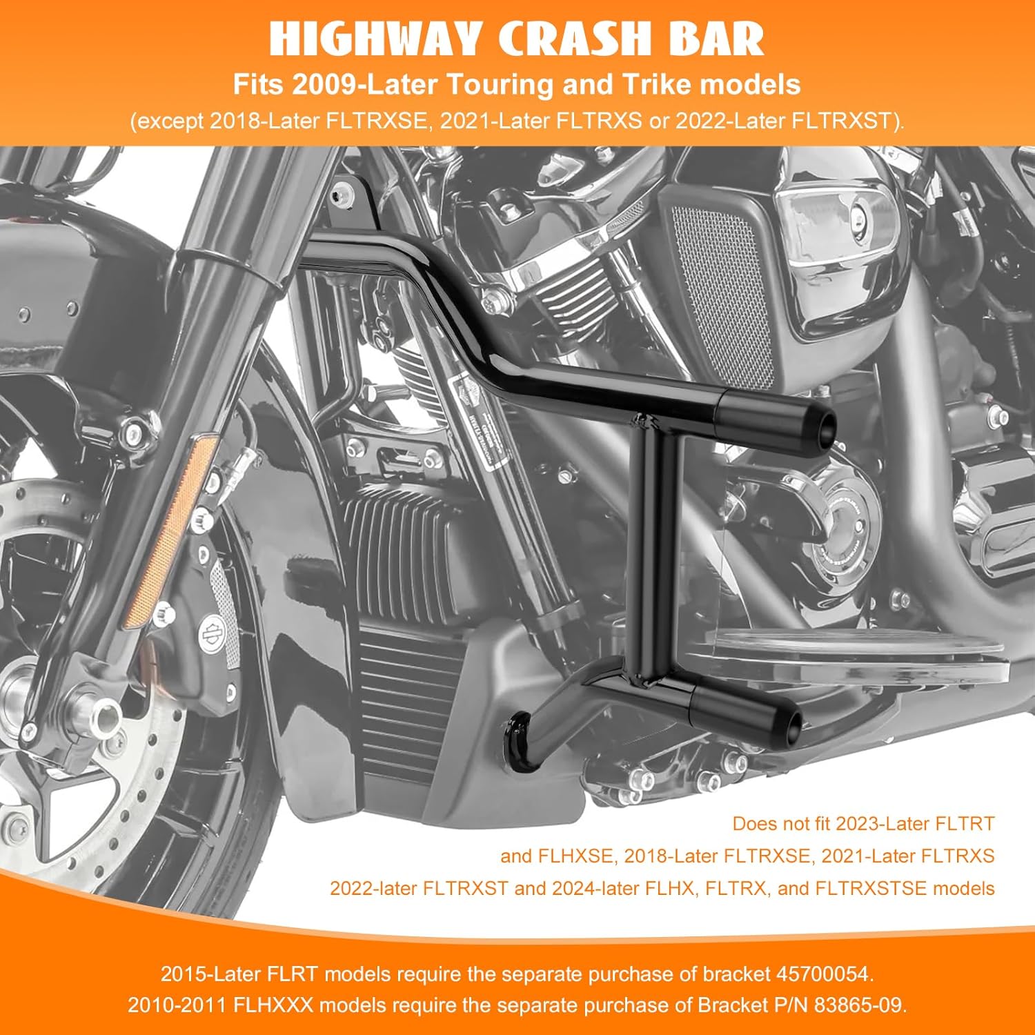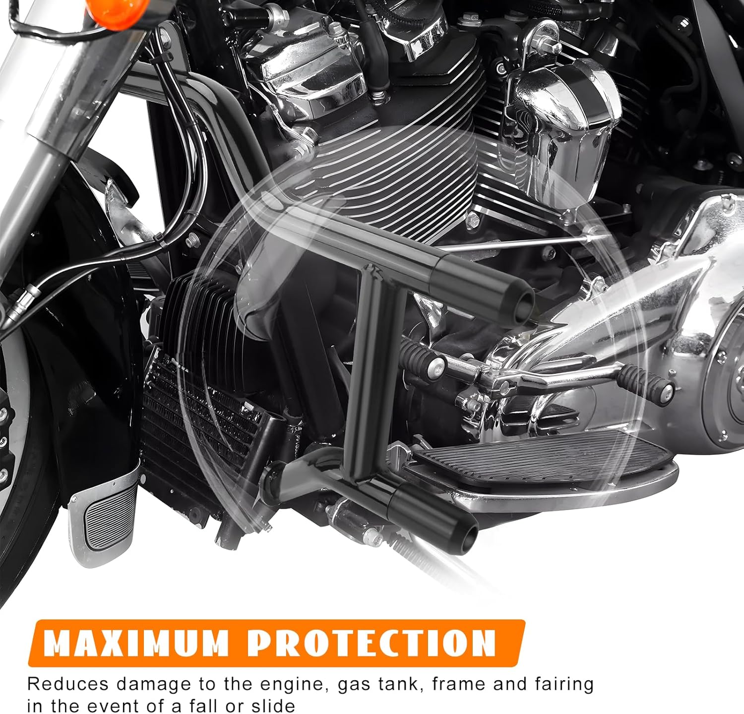 Engine Guard Front Highway Crash Bar Frame Slider Protector w/Flat Washer Flat-Out Bar Fits 2009-2025 Touring Road Glide Road King Street Glide Electra Glide CVO Limited Freewheeler Trike Models