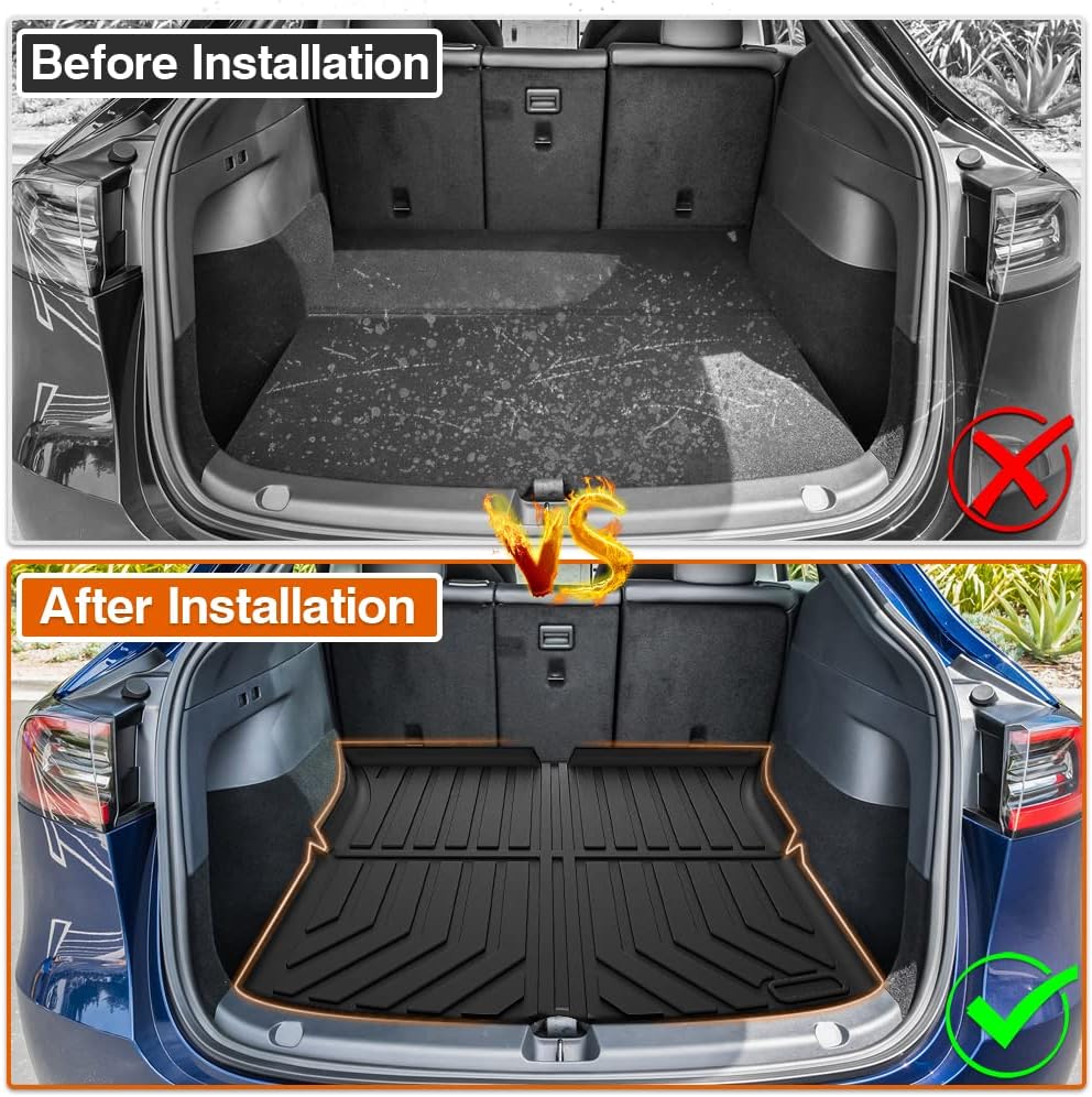 - Custom Fit for Model Y: Frunk trunk mats are only suitable for 2020 2021 2022 2023 Tesla Model Y 5 Seater (NOT for Model Y 7 Seater). Give your car cargo area full coverage and make your vehicle exceptionally good-looking.