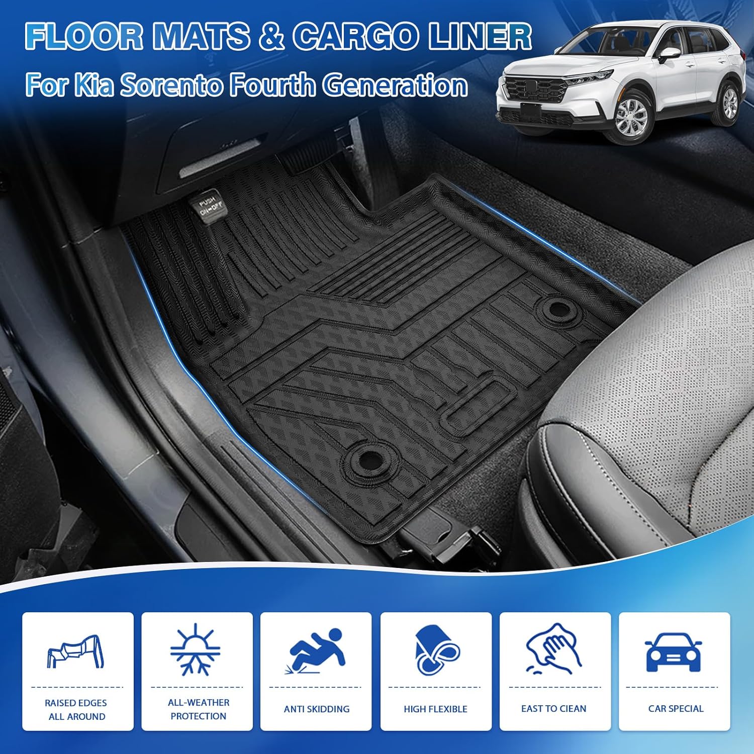 - Customized Design: The floor mats and trunk liner are suitable for 2021 2022 2023 2024 2025 Kia Sorento (Only Fits Bench Seats & 7 Seats). 3D scanning customization according original car data, 100% fit your vehicle, no trimming required.