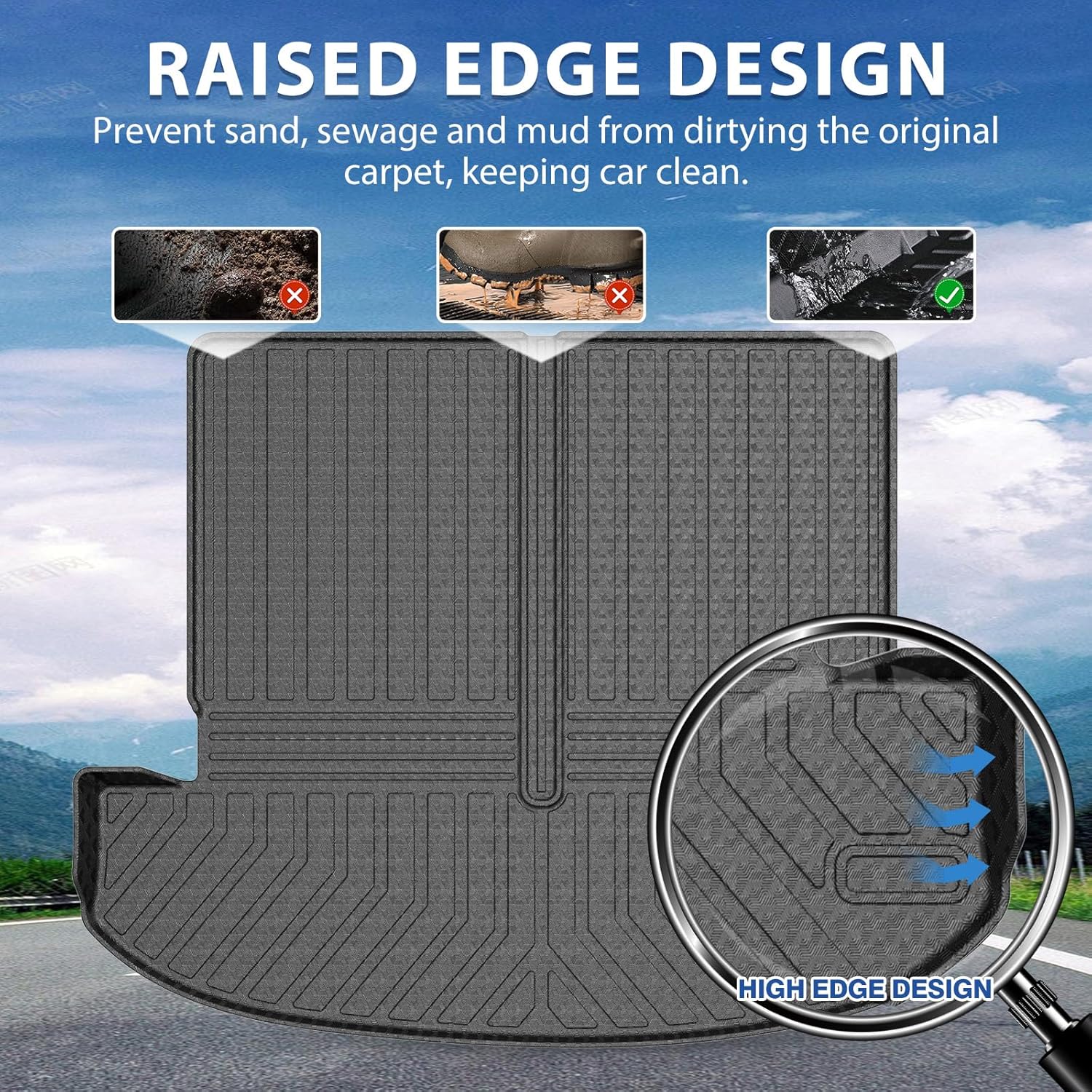 - All Weather Protection: The floor liners are designed to trap liquid, spills, etc. Keep your car clean and provide full protection even in bad weather (snowy/rainy/foggy/hazy). Raised edges can prevent mud and dirt from flowing to the inside of the car, protecting your car perfectly.