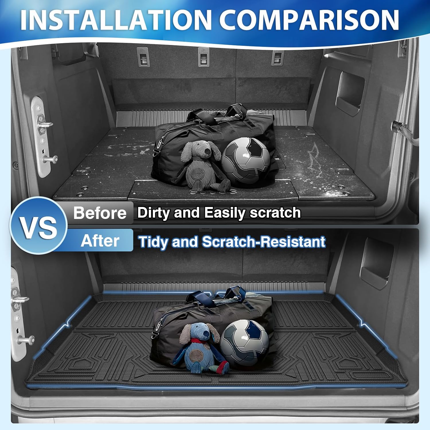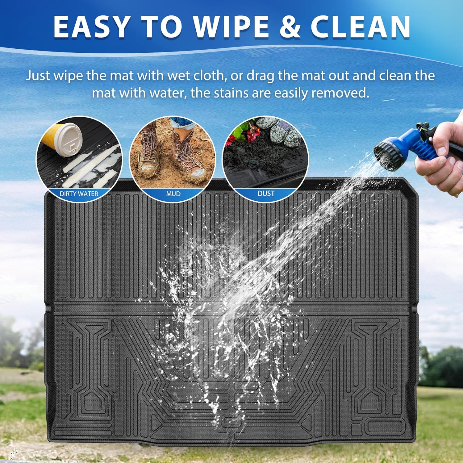 - Quick & Easy to Clean: With the waterproof and stain-resistant surface, cargo liner is easier to clean by wiping with wet towel or rinsing with water directly. Quick and easy to make your mat look new again.