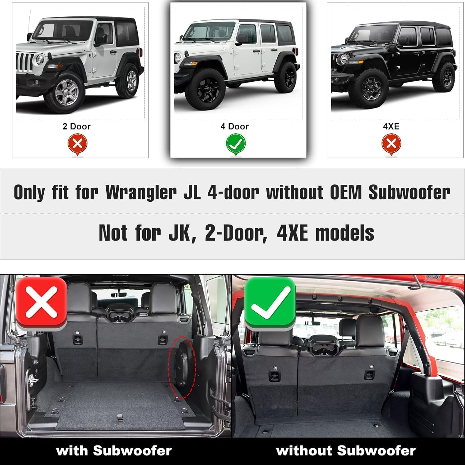 - Precise Fit: floor mats and floor liner fit for Jeep wrangler JL without Subwoofer 2018 2019 2020 2021 2022 2023 2024(Non JK or 4XE).all weather tech floor liners With 3D accurate digital 1:1 laser scanning, the original car data is accurately scanned to ensure that the mat completely covers the car floor, it fits the body like a glove.