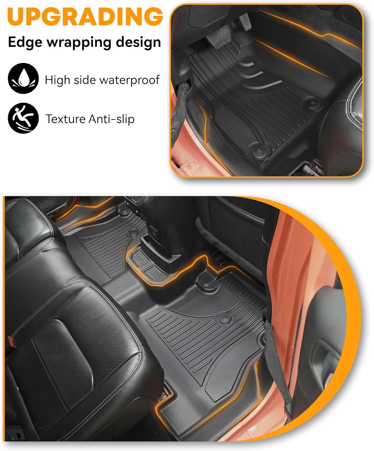 - Easy to clean: 2022 wrangler JL floor mats , clean just wipe with a wet cloth or take them out from the vehicle to rinse and dry. The design of the surrounding high edge, even in heavy rain, snowstorm and other weather, do not worry about water flowing into the car.