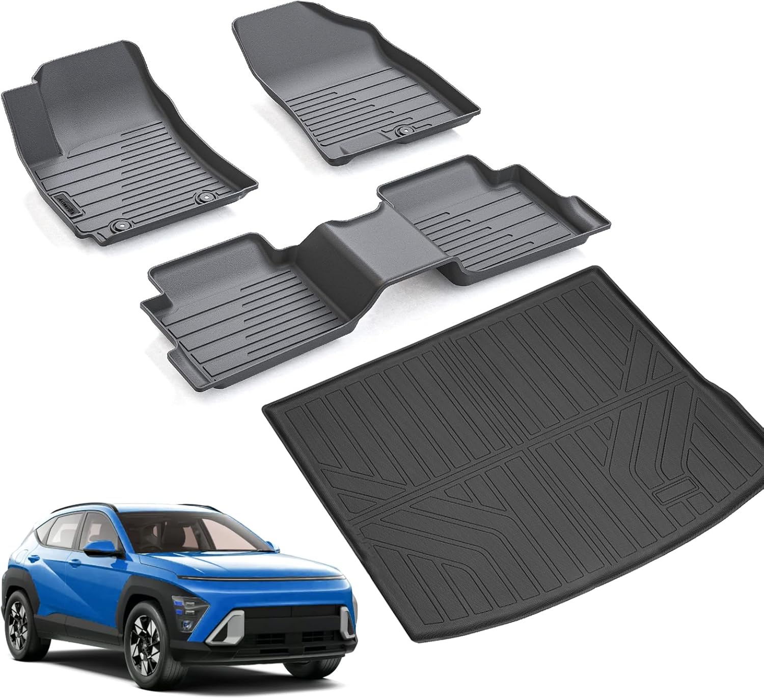 - 【🚗Custom Fit for HYUNDAI KONA 2024 2025 (No Electric Model)】Floor Mats With Trunk Mat.The AltraVos floor mats is high-precision laser measured, which means that our customized fit will provide the best coverage range, looking like the mat included with your car. A specially designed fixing system and anti slip tip are used on the cushion to lock it in place.