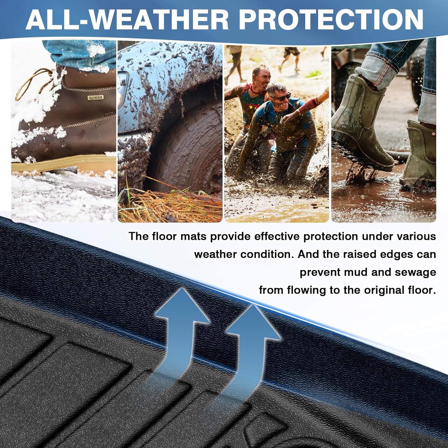 - 【All Weather Protection】The floor liners are designed to trap liquid, spills, etc, keeping your car clean. Perfect protection even in bad weather (snowy/rainy/foggy/hazy). And the raised edges can prevent mud and sewage from flowing to the inside of the car, protecting the original floor.