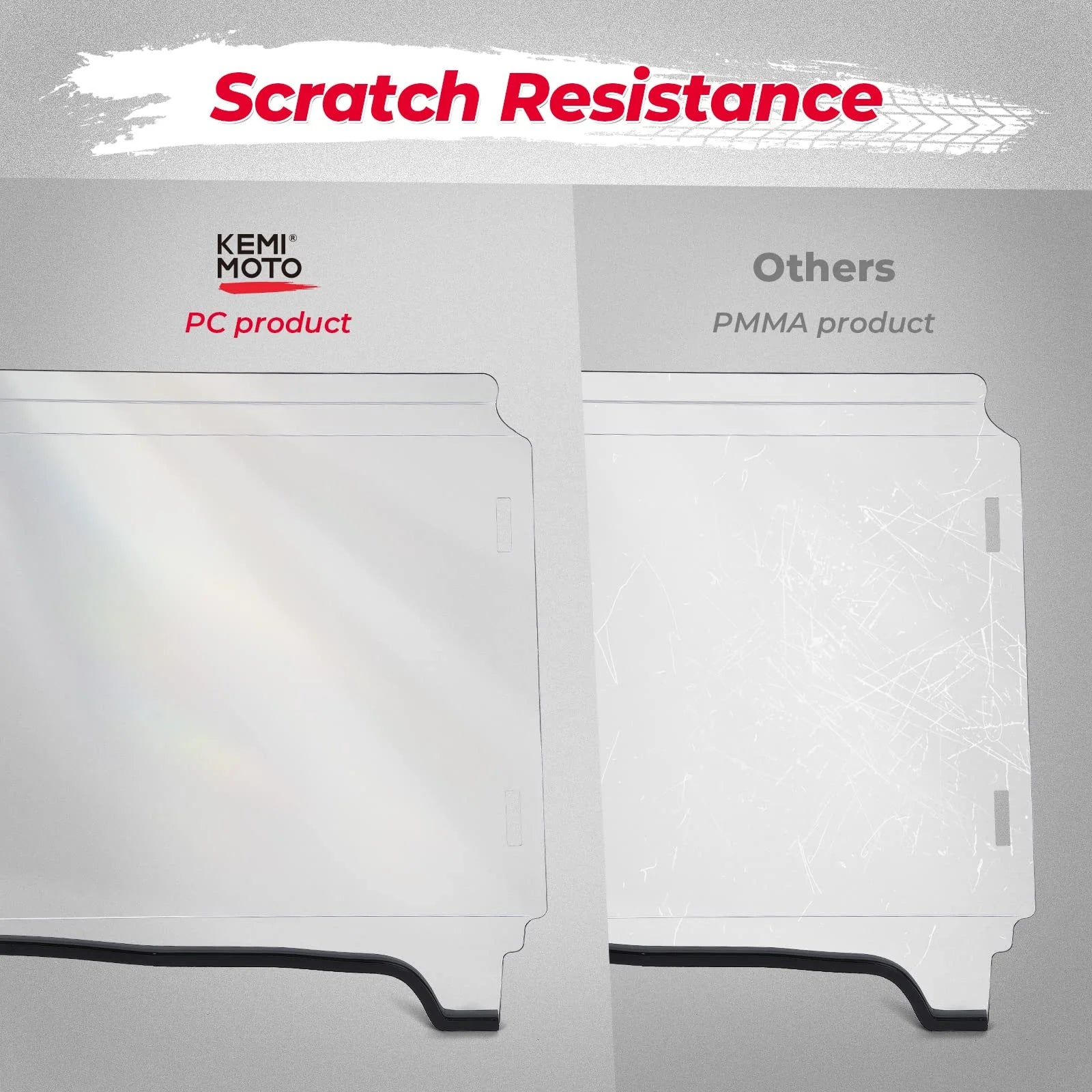 KEMIMOTO front windshield for UTVs is made of high-quality polycarbonate,at 250 times stronger than glass and 25 times stronger than acrylic,can provide you a clear view and waterproof windproof dust-proof and puncture-resistant protection.