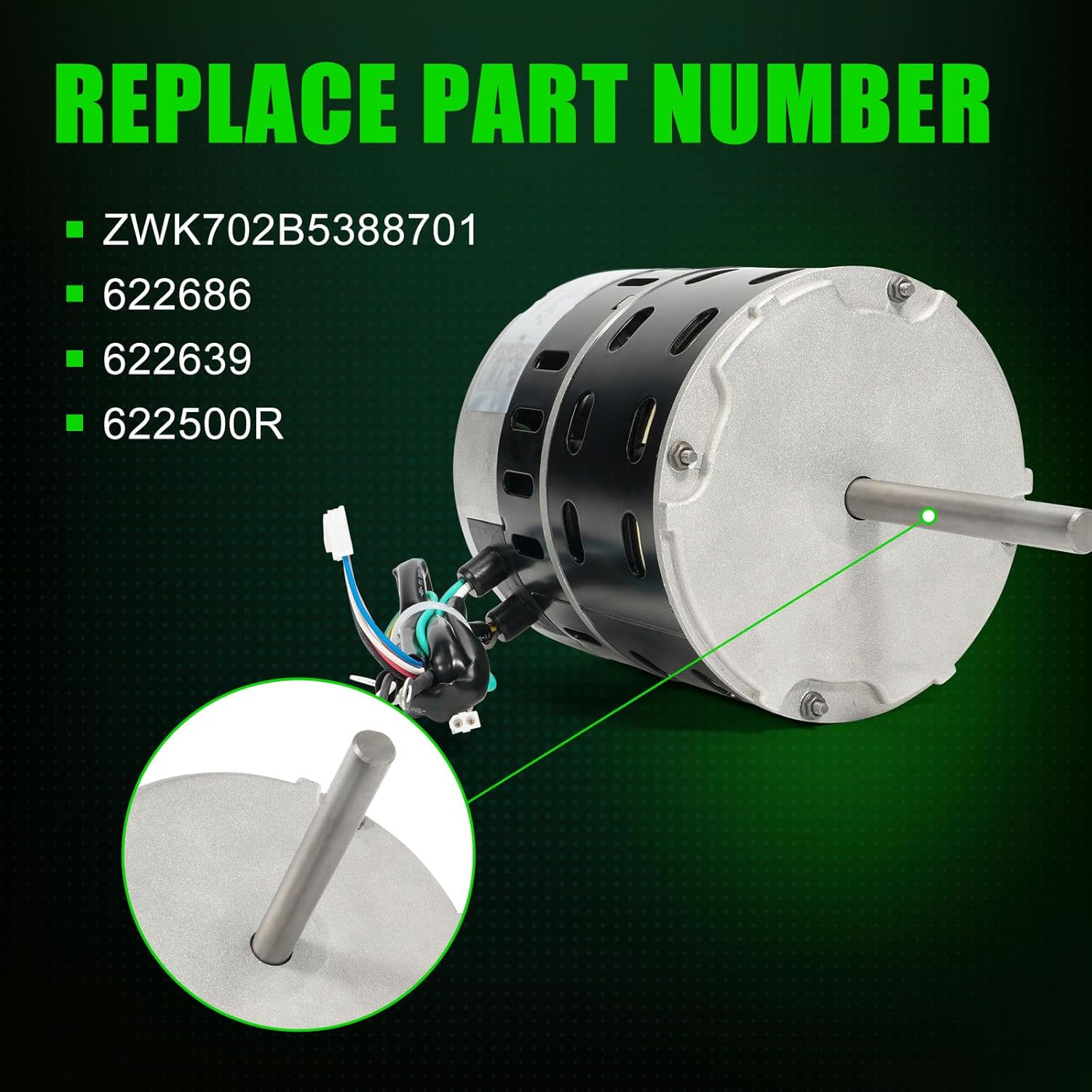 Furnace Blower Motor 1/2HP, 208-230V, 50/60 Hz, 1050 RPM, 3.8-3.6A Compatible with Intertherm fit for E7 Model Furnaces Replace 622686 622639