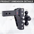 Adjustable Height - Our adjustable hitch has a 7-inch drop and rise height, which can be easily adjusted to perfectly solve the problem of the height difference between the truck receiver tube and the coupler, making your journey safer and more stable.