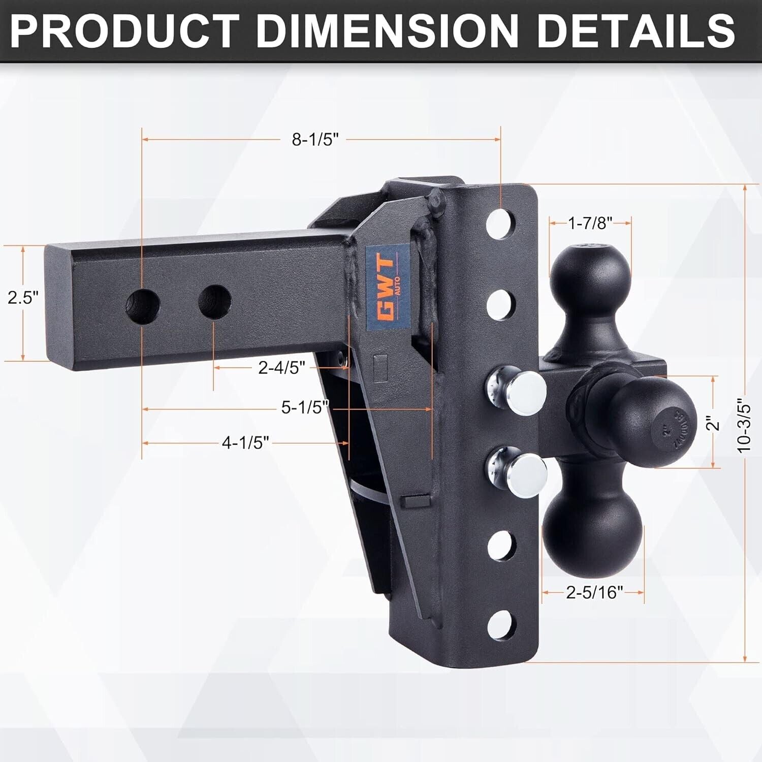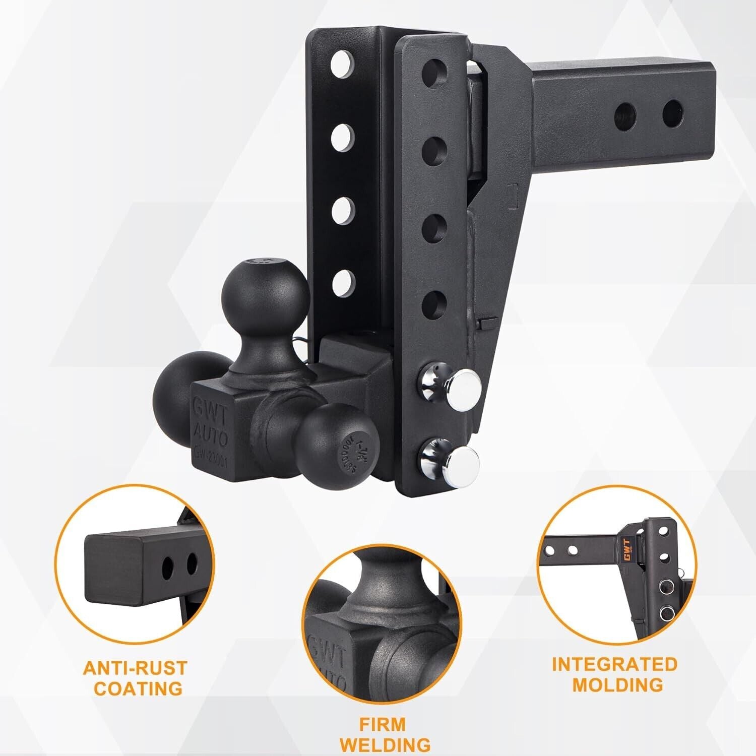 * EXQUISITE TECHNOLOGY-Trailer hitch is coated with frosted dark finish to withstand corrosion of rain, dust, high temperature and other corrosive effects. The tri-ball welding technology is carried on international topping welding equipment. The tri-ball has the advantages of high strength, durability, long service life and beauty.