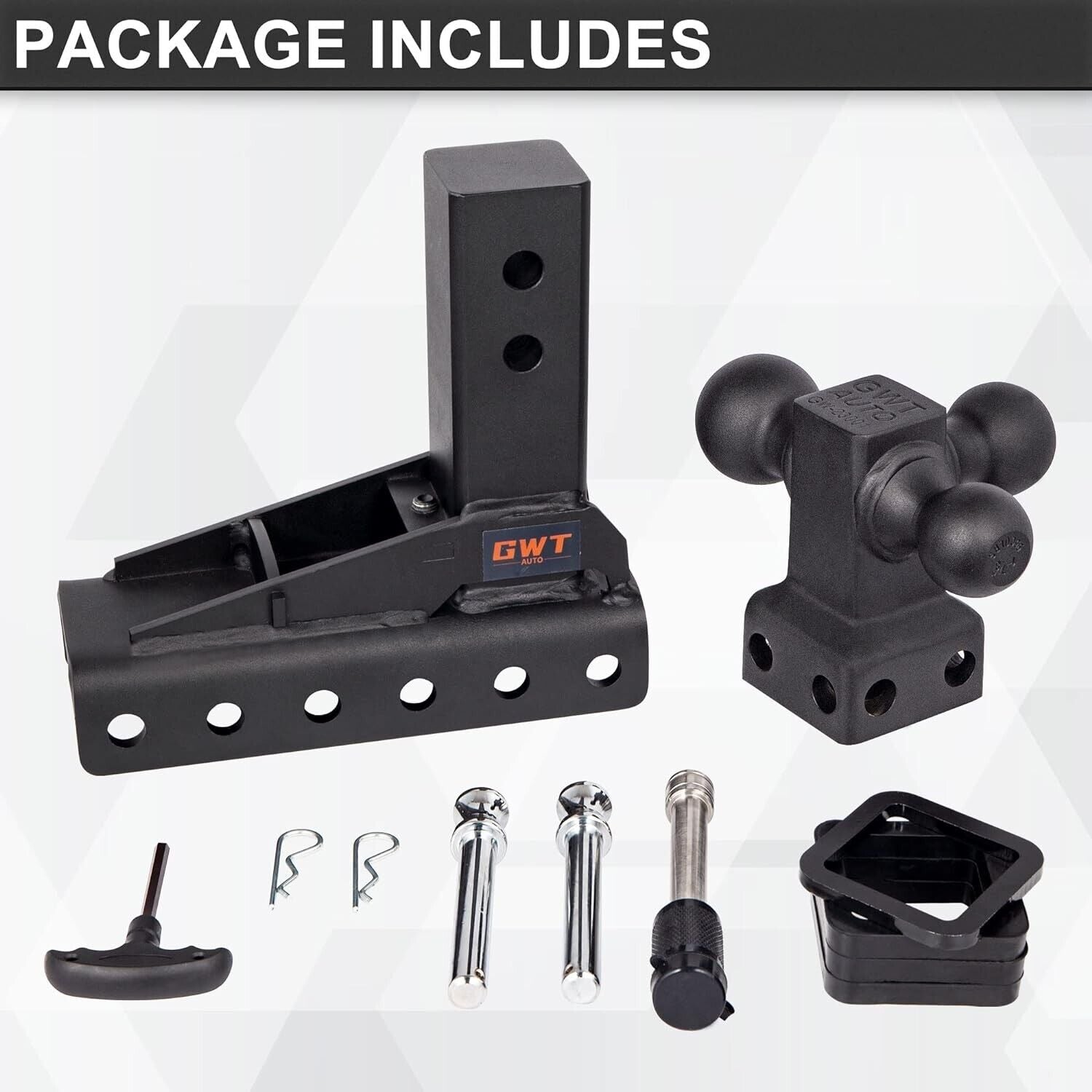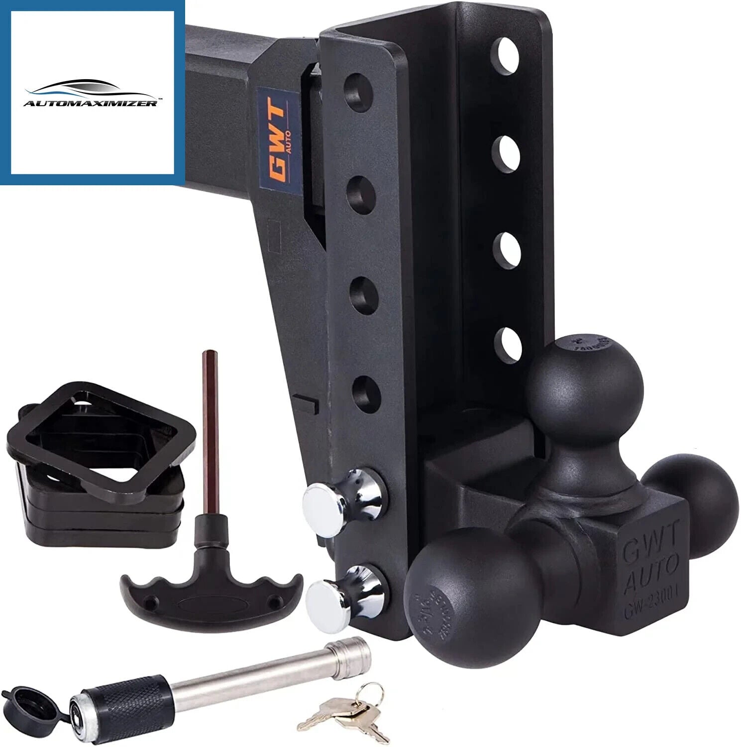 ADJUSTABLE TRAILER HITCH, TRI-BALL (1-7/8" X 2" X 2-5/16") DROP HITCH, FITS 2.5-INCH RECEIVER, 7 INCH DROP CUSHIONED HITCH,18500 LBS GTW-CLASS 3 TOW HITCH FOR HEAVY DUTY TRUCK, SOLID MOUNT