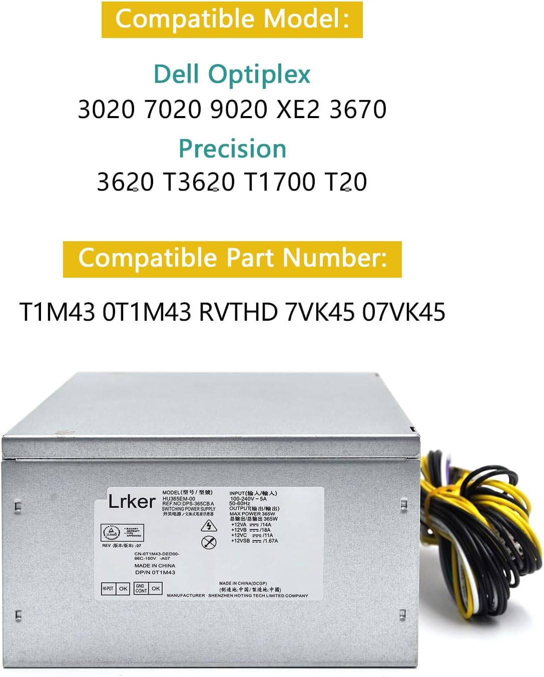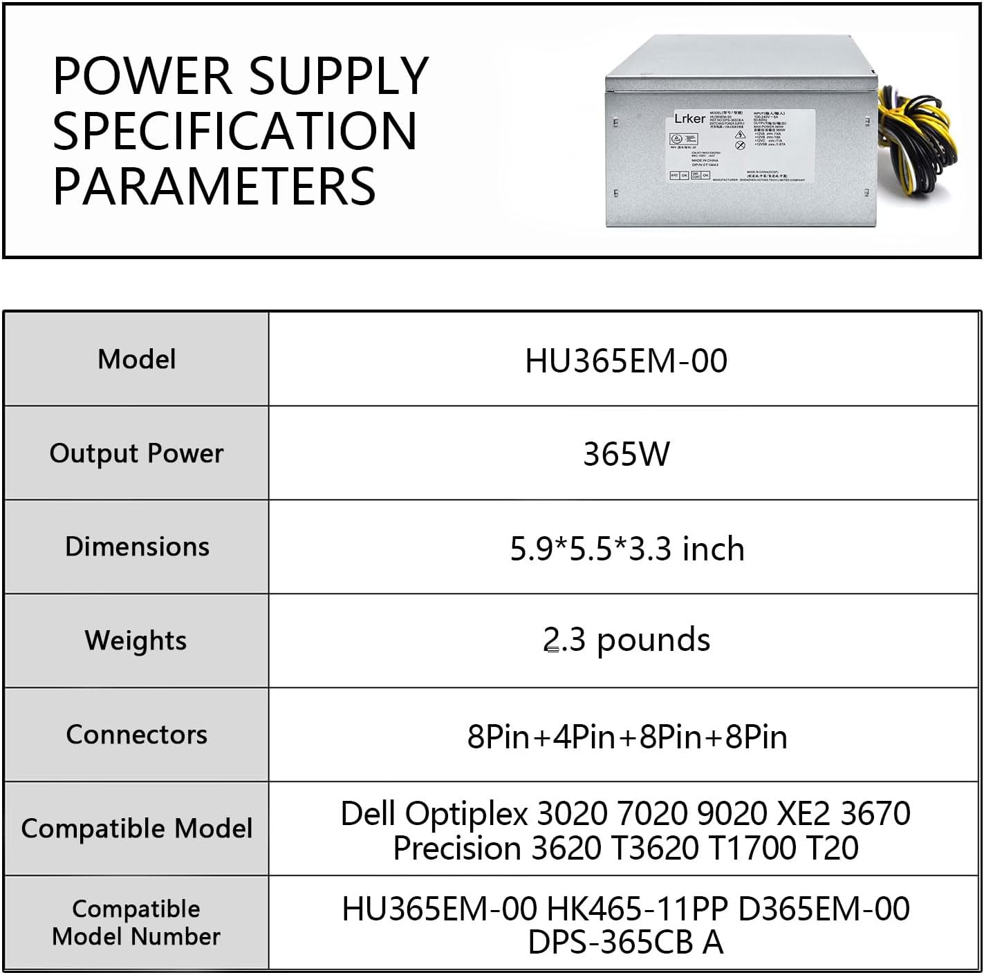 HU365EM-00 HK465-11PP 365W Power Supply Compatible with Dell Optiplex 3020 7020 9020 XE2 3670 Precision 3620 T3620 T1700 T20 7VK45 T1M43 DPS-365CB A RVTHD D365EM-00