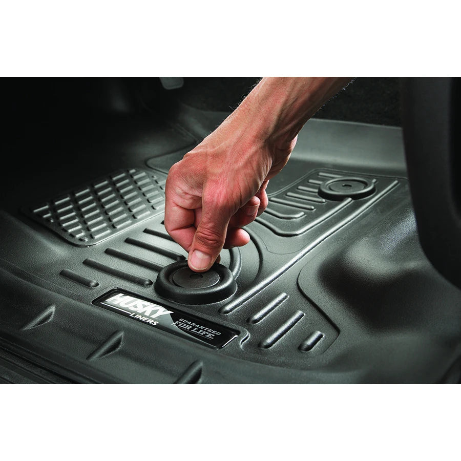 Husky Liners WeatherBeater Floor Liners are made from a unique material which repels dirt, while its design remains super easy to clean. The liners are manufactured for all parts of your vehicle's floor - it's up to you to decide if you want your full car protected, or just certain areas. The liners will fit inside your car snugly in order to keep all contaminants from reaching your floor. The perfect fit will also ensure the liners won't slide once installed. For added safety, a special slip-resistant backing on each liner will grip your vehicle's floor and will eliminate any chance of shifting. The backing material is made with the patented Spin technology and features Sta-Put nibs which dig into your floor to ensure the liners remain in place. WeatherBeater Floor Liners are manufactured from a thermoplastic material called Polyurethane. The material is patented and developed exclusively for Husky Liners. Its extreme durability guarantees your liner will never crack or warp, while remaining completely flexible in freezing temperatures and odor-free in the intense summer heat.