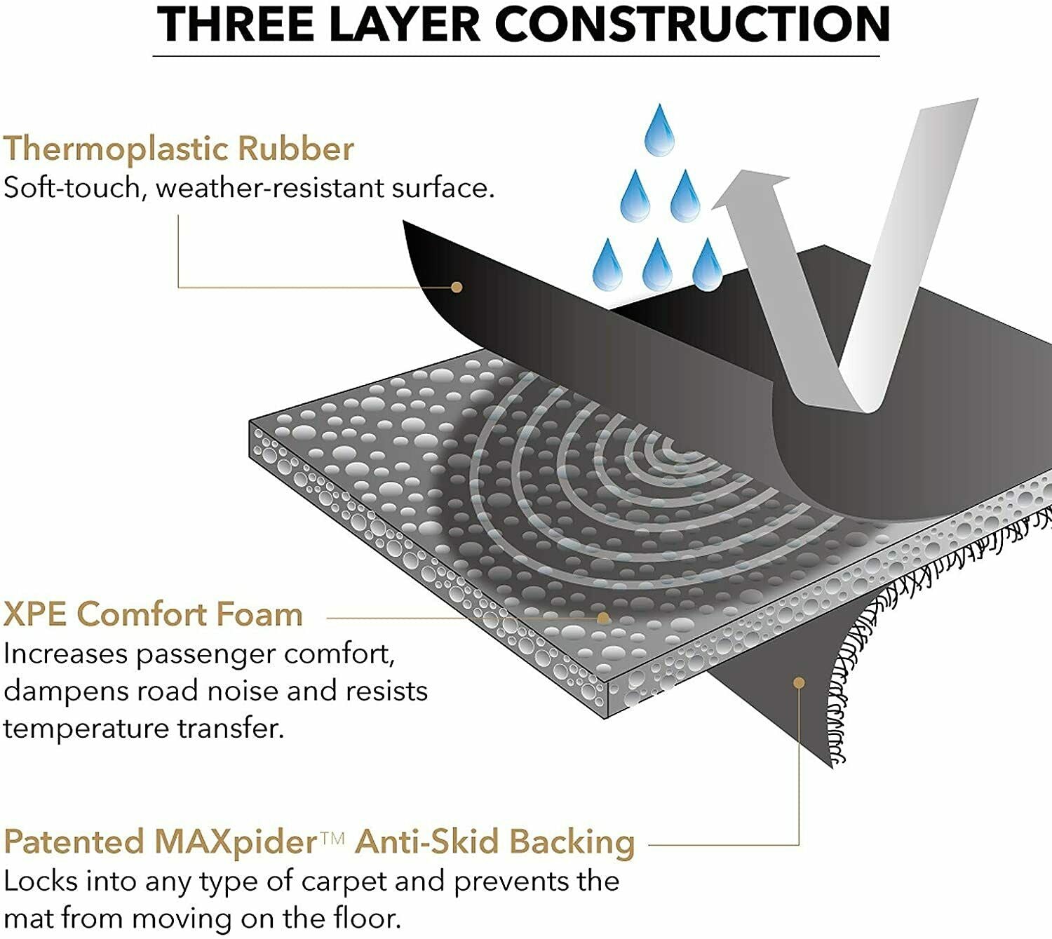 - Patented maxpider bottom layer keeps mats in place without harming original carpet like Velcro or without leaving marks like nibs of traditional rubber floor mats