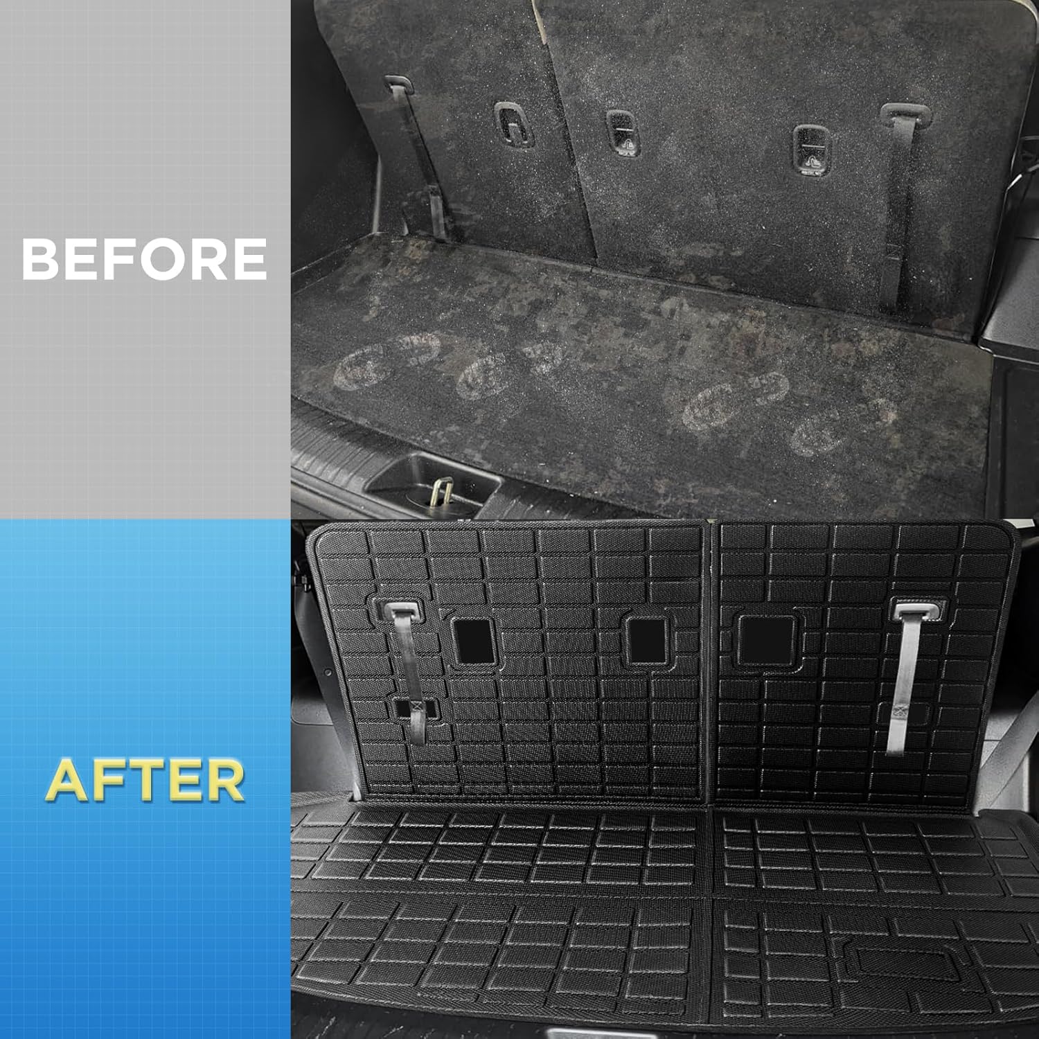 - 【Integrated Molding Process】JUZISHU for Kia Telluride trunk mats with backrest mat uses 3D code scanning integrated injection molding technology.The details of each floor mat in Your Telluride are more closely fitted, which provides maximum accuracy and coverage.The precisely high-edge design perfectly encloses the gap between the edges to ensure that dust will not enter your original floor pad.