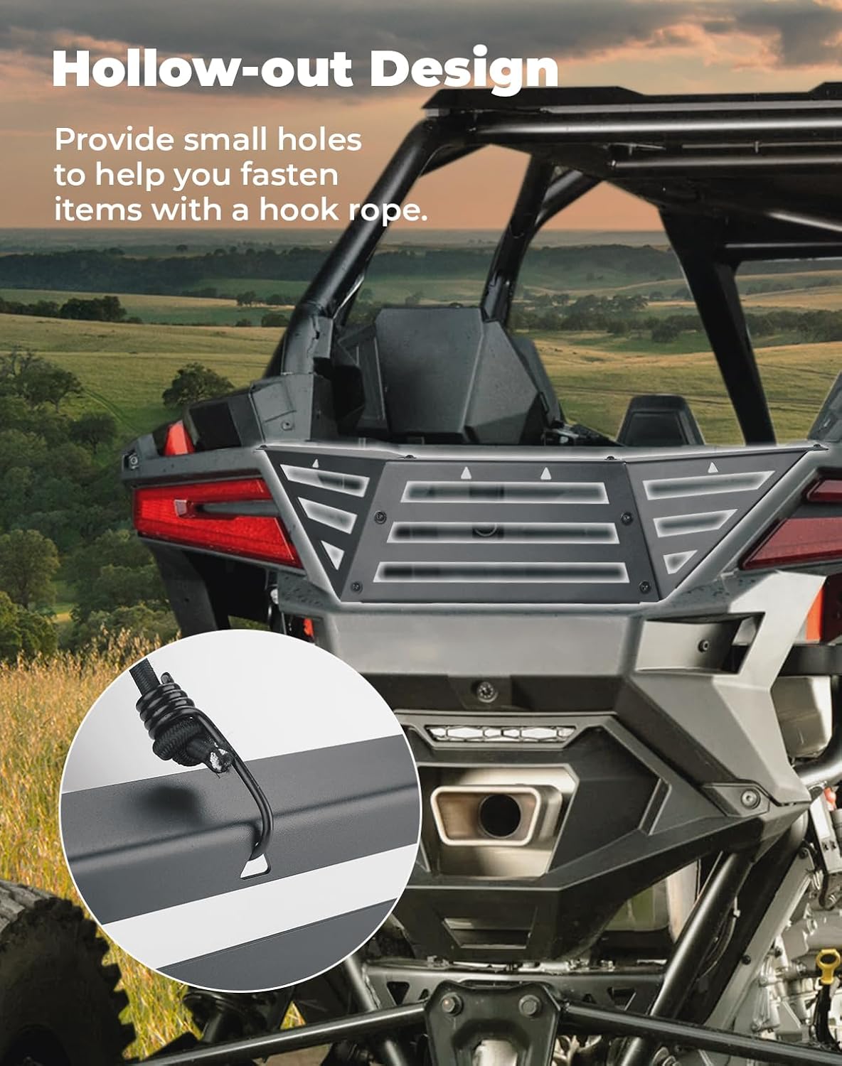 - Secure Storage: The hollow-carved design allows for binding rope or mesh to secure items in the rear, ensuring tools, accessories, and cargo stay in place even on rough terrain.