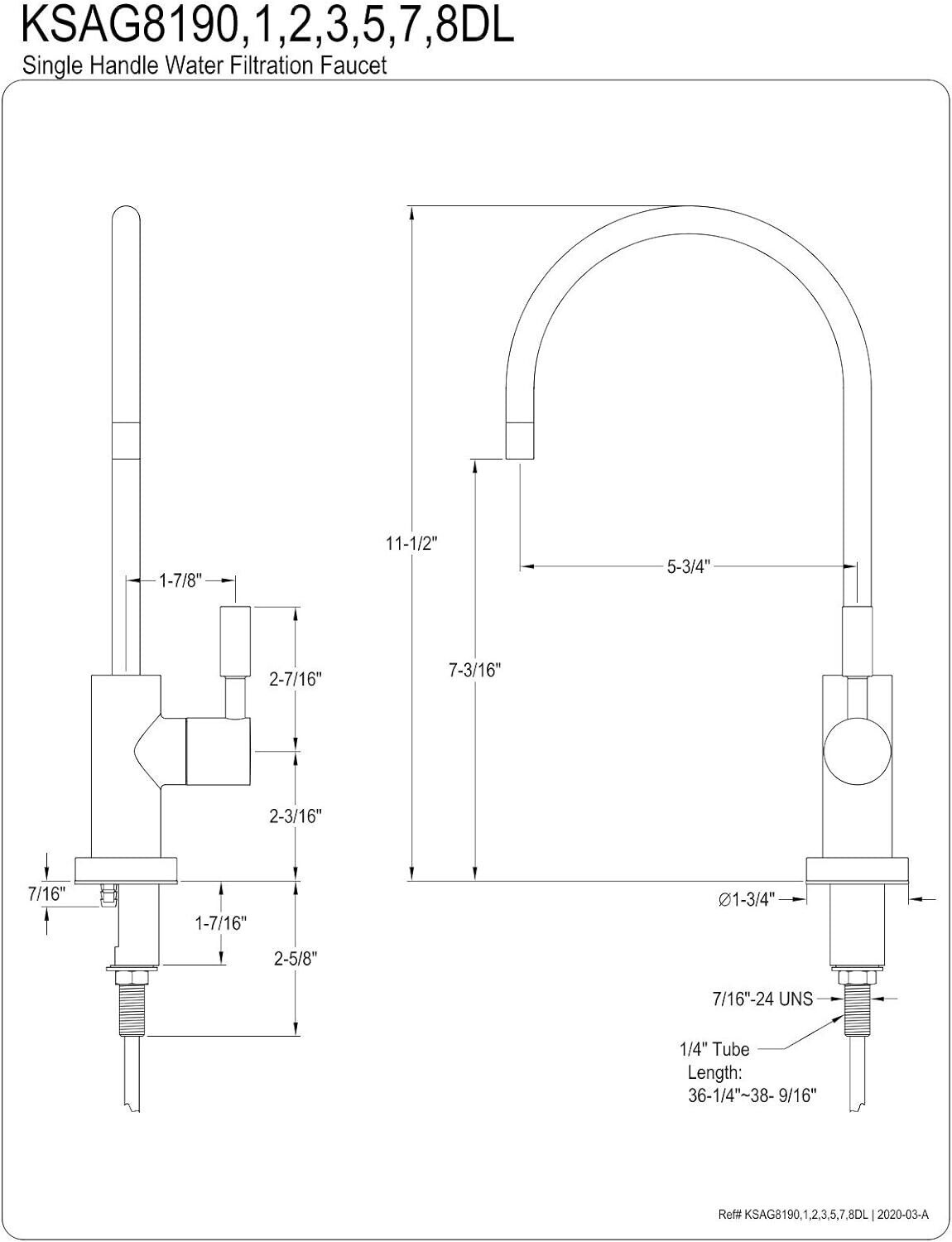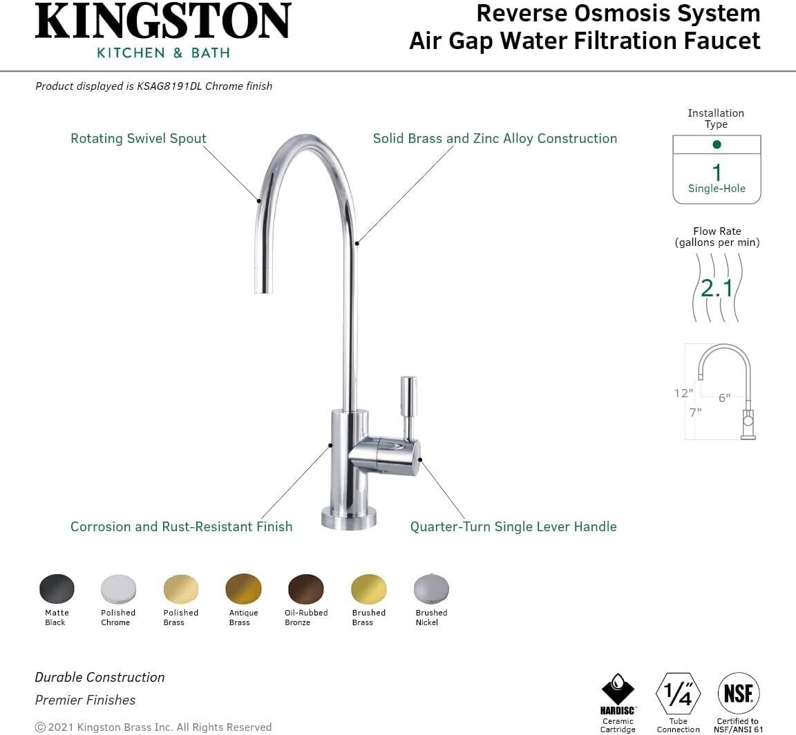 Kingston Brass Concord Reverse Osmosis System Filtration Water Air Gap Faucet