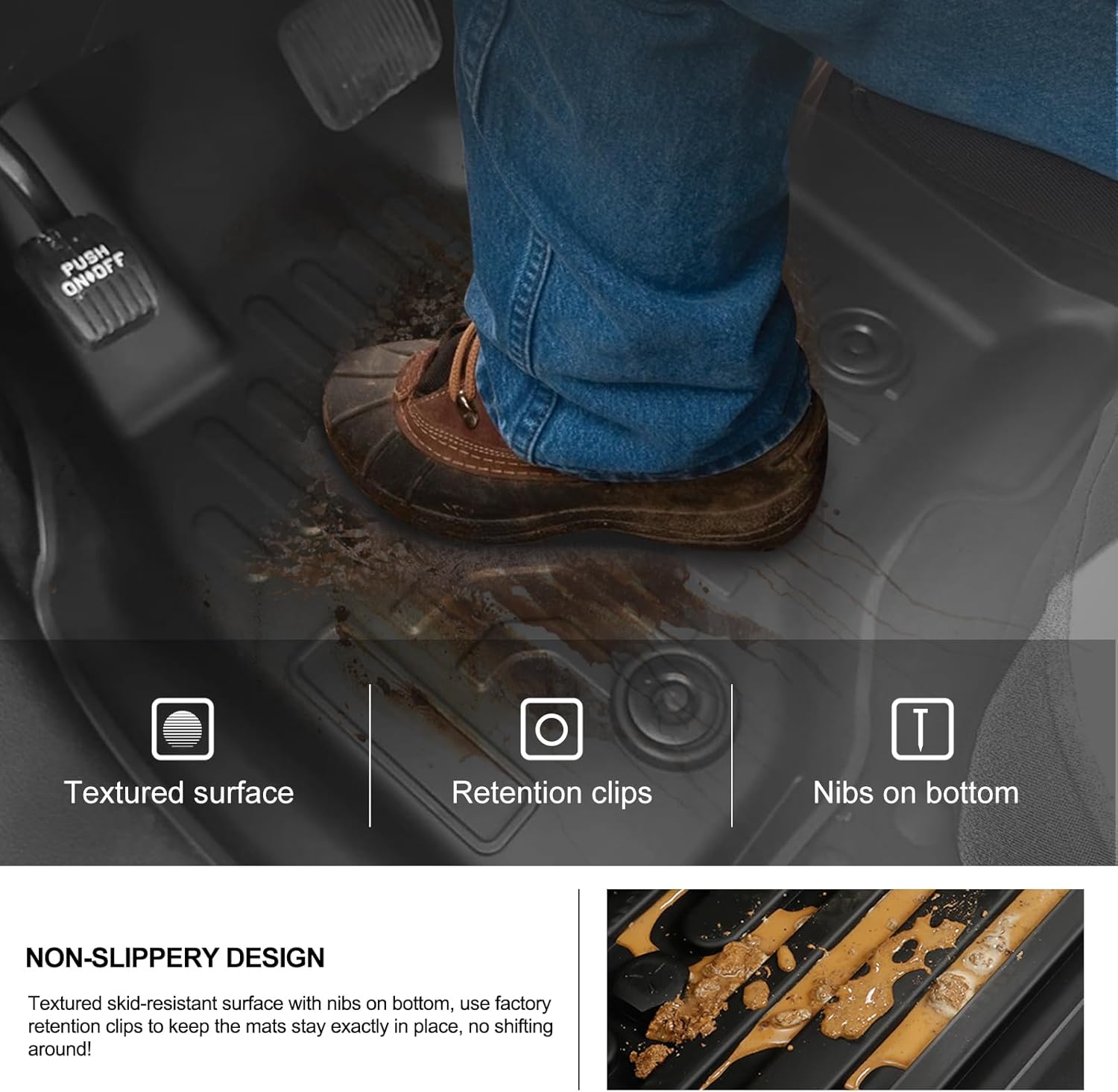 - Non-Slippery & Easy To Clean: Just yank it out and clean it off with a hose then carry on like new, the mats work with factory fasteners, the anti-shift nibs on the back of the mats grip the carpet and help hold your mats in place