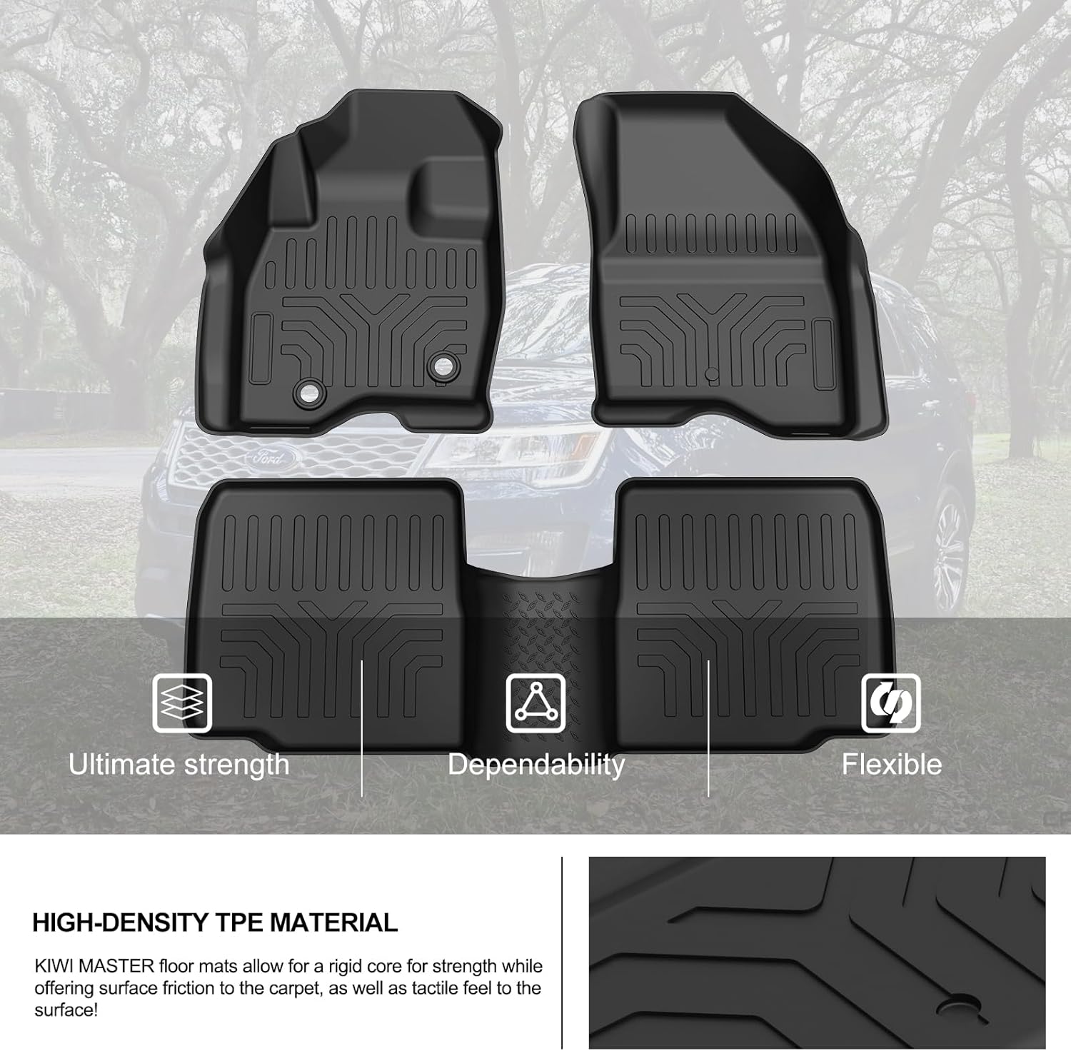 KIWI MASTER Floor Mats Compatible for 2015-2019 Ford Explorer Accessories All Weather Protector Mat Liners Front Rear 2 Row Seat TPE Slush Liner Black