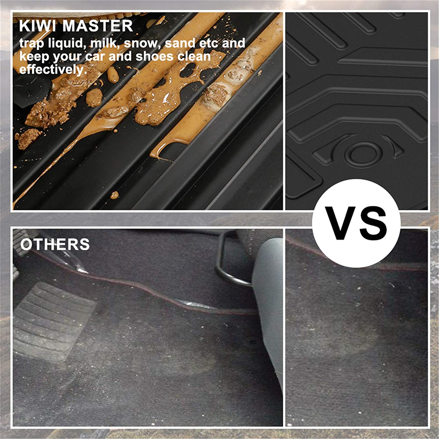 ▶ NON-SMELL & DURABLE FLOOR LINERS - KIWI MASTER floor mats are made with high-density TPE materials allows for a rigid core for strength while offering surface friction to the carpet, as well as tactile feel to the surface! Non-toxic and odorless TPE material ensures you are 100% safe even in extreme hot weather, contains no latex, cadmium, lead or any harmful PVC.