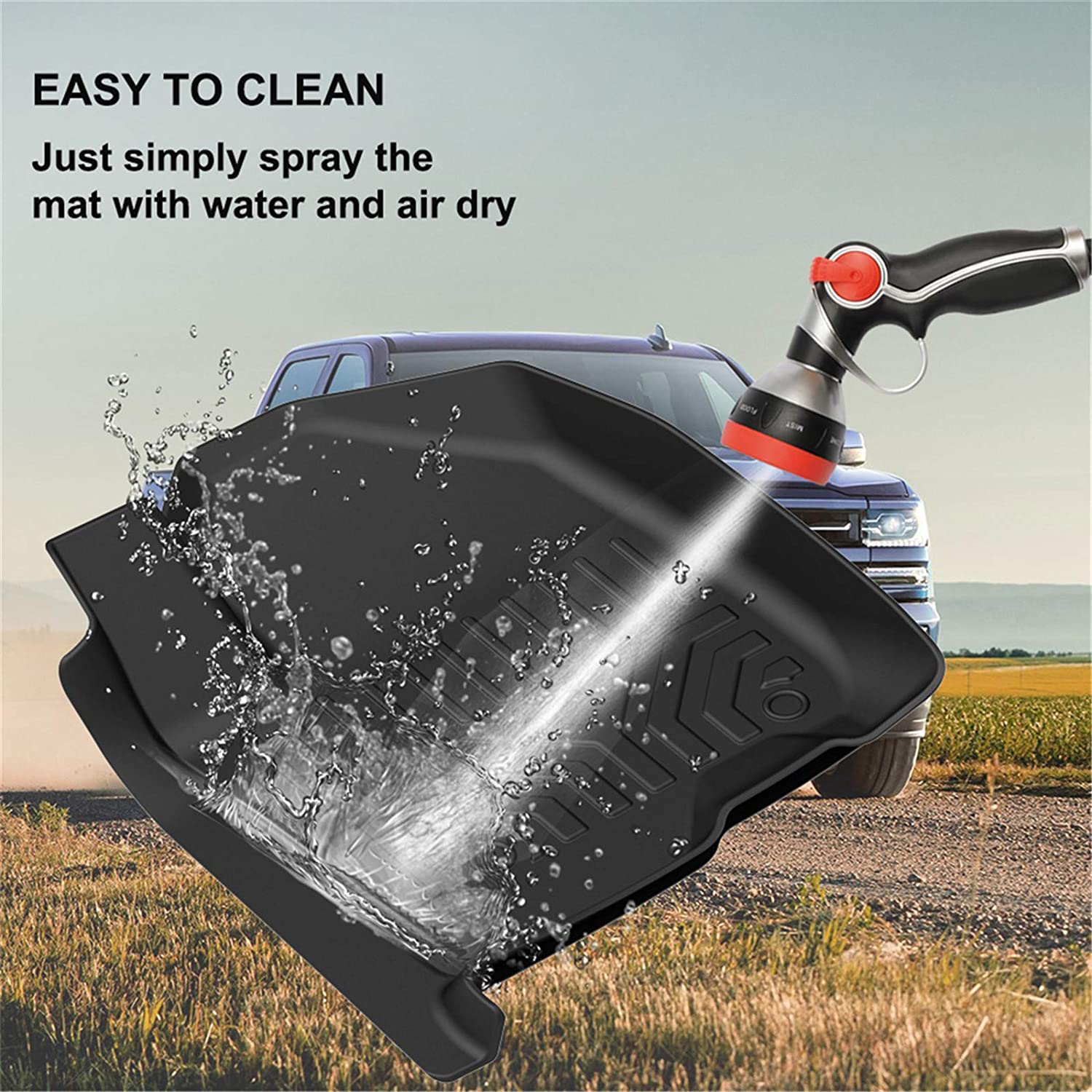 ▶ NON-SLIPPERY DESIGN & EASY TO CLEAN - Works with factory hooks and fasteners, the anti-shift nibs on the back of the mats grip the carpet and helps hold your mats in place without the use of additional fasteners. If it is dirty, simply remove the floor liner from your Chevrolet Silverado and clean it off with a hose.