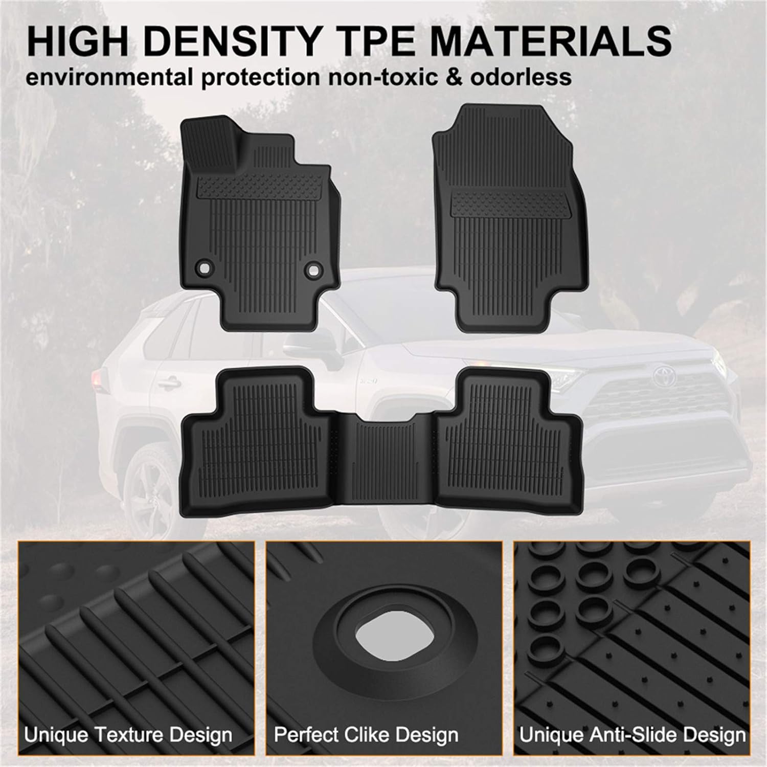KIWI MASTER Floor Mats Compatible for 2019-2022 Toyota RAV4 All Models Accessories All Weather Protector Mat Liners Front Rear 2 Row Seat TPE Slush Liner Black PT908-42190-02