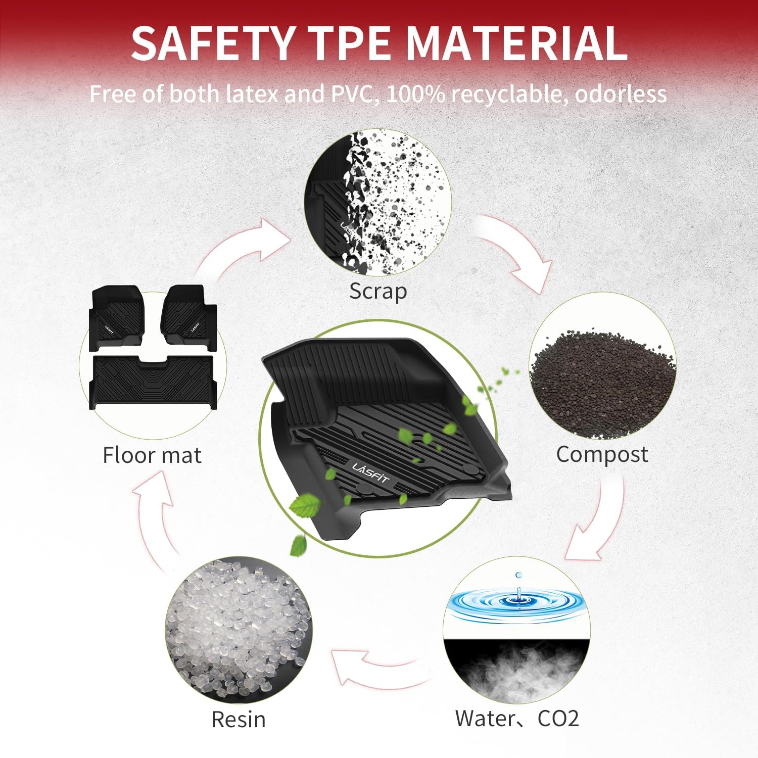- [ENVIRONMENT FRIENDLY] The All Weather F-250/F-350 floor mats use elastic TPE (Thermoplastic Elastomer), No foul odor is produced even at high temperatures. soft touch and exquisite finish. The F-250/F-350 Super Duty Crew Cab floor mats are skid-proof and recyclable.