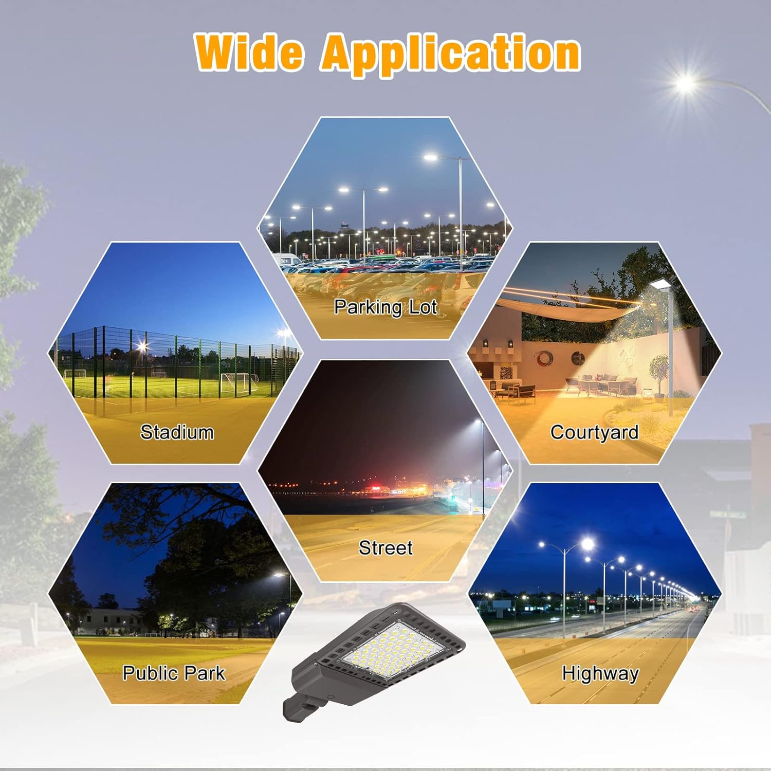 - 【With Dusk To Dawn Photocell】With sensitive and accurate photocell, this LED parking lot light automatically turns on at night and turns off at daytime, reducing waste caused by voltage instability. What's more, our 200W outdoor area light provides 28000LM brightness, which is more effective than traditional 600w metal halide light fixtures, helping you save more than 80% of your electricity bill.