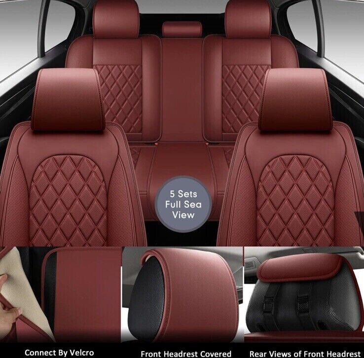 LINGVIDO Burgundy Faux Leather Car Seat Covers