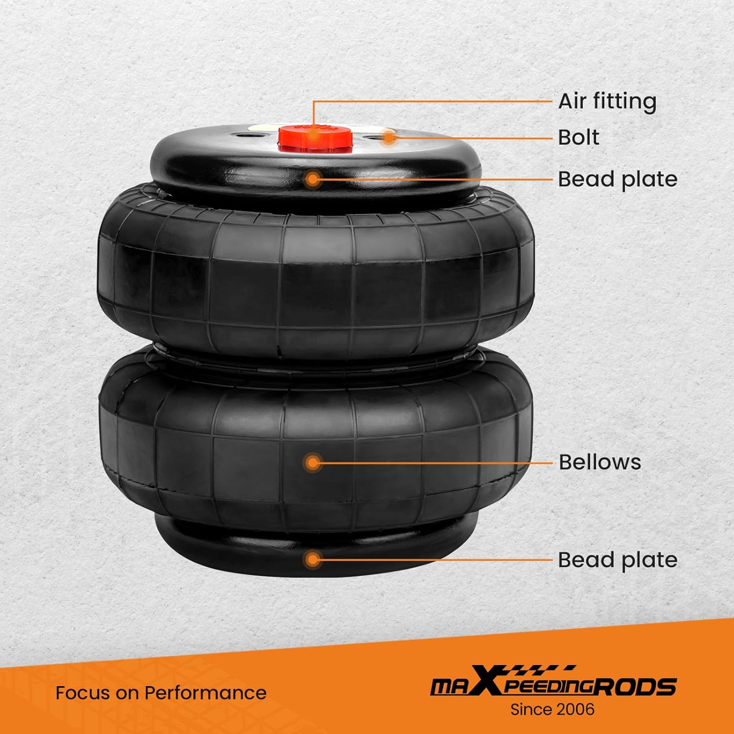 maXpeedingrods 2 PCS Universal Air Suspension Spring Bag Double Bellow Standard 2500 lbs 1/2"npt Single Port Air Ride Strut Assembly for Trucks