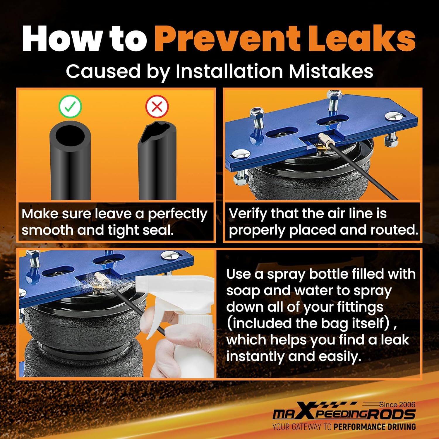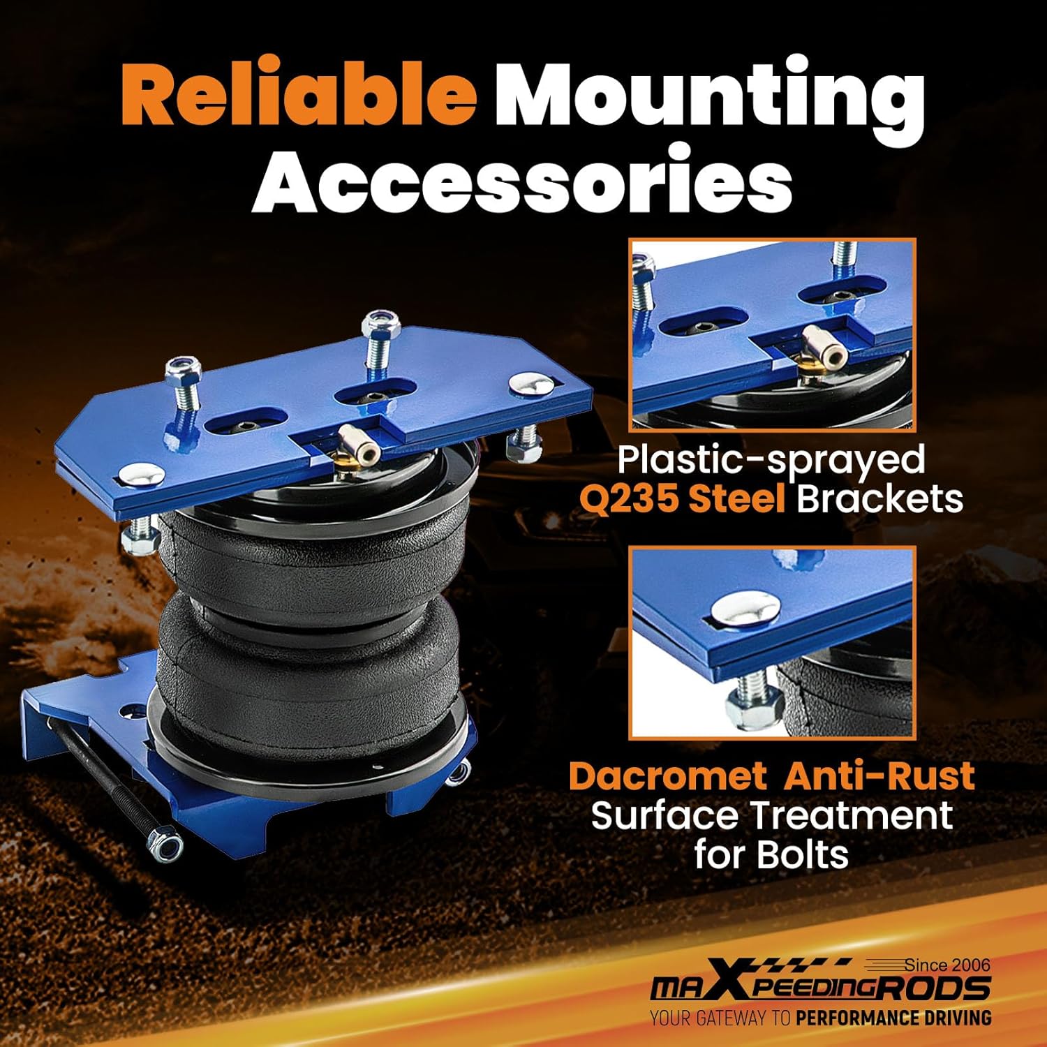 - 【PACKAGE INCLUDED】 - 2X Air springs + Air lines + Schrader valve + Mounting Bracket + Mounting Hardware (Instructions are not included, You can download the manual installation PDF in the listing page, please do not hesitate to contact us if you need or have any unsatisfied experience on our product)