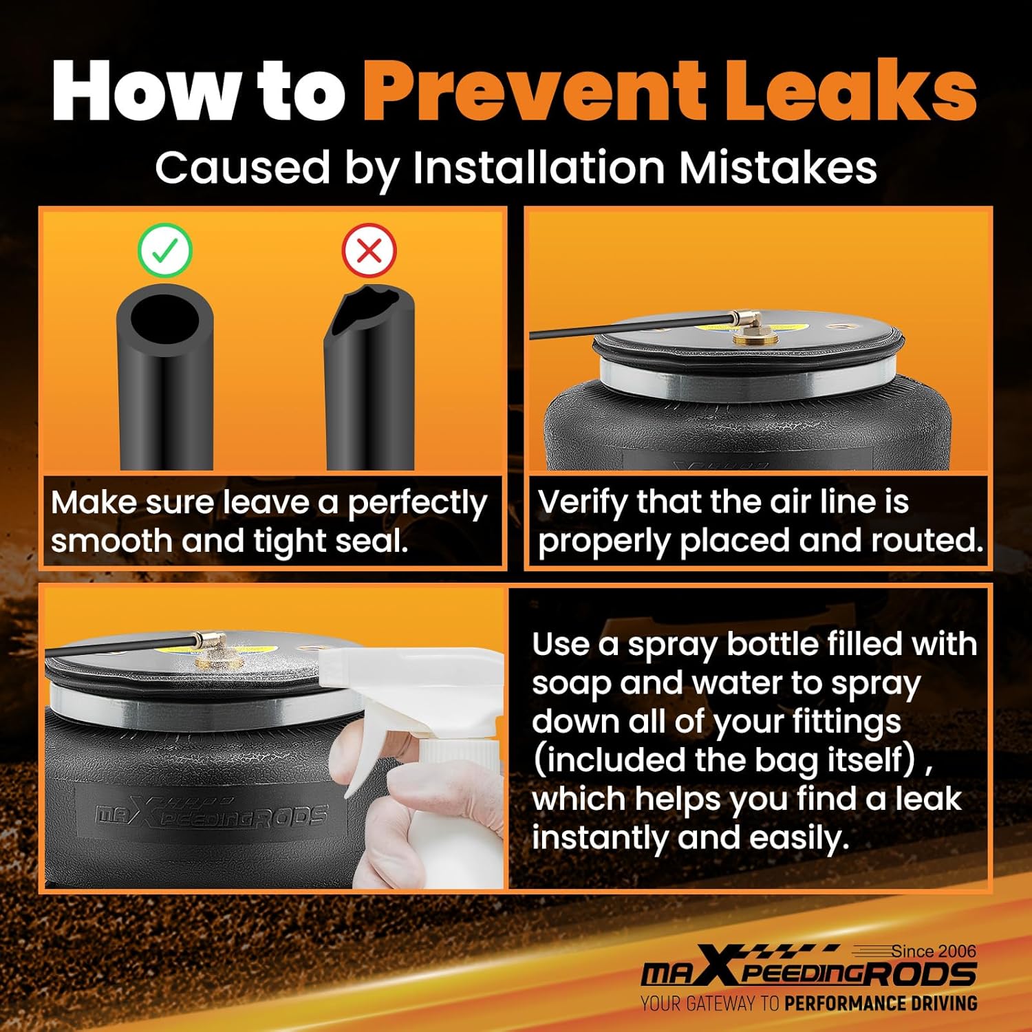- 【REDUCE BUMPS ON ROAD】- This air spring kit can provide load leveling capacity up to 5,000 pounds of load leveling capability, provide a comfort ride. With Internal Jounce Bumper, preventing air spring suspension kit from being completely compacted in the impact caused by heavy objects, potholes, curbs, or objects on the road